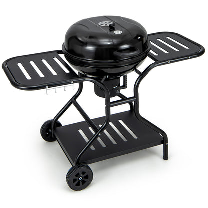 Ample storage space and Easy Movement: This charcoal grill features a side storage rack and an extra hook rack, providing you with ample space to store all ythe grilling essentials. More, the two durable wheels make it easy to move the grill around, perfect for backyard parties or camping trips.