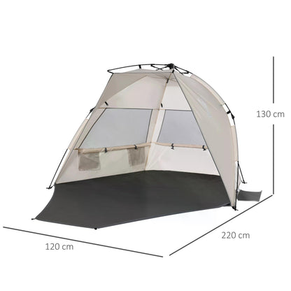 Outsunny 1-2 Man Pop-Up Beach Tent, Sun Shelter UV 20+ Protection with Long Floor Mesh Windows Sandbags Carry Bag Summer Hut House