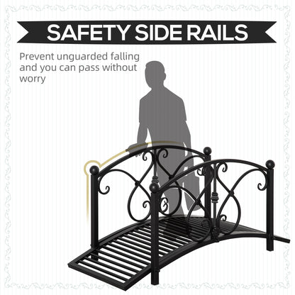 Outsunny 102L x 48W x 49H Classic Metal Garden Bridge with Safety Railings Arc Footbridge Decorative Pond for Backyard Creek Stream, Black