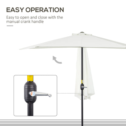 Outsunny 2.7m Balcony Half Parasol 5 Steel Ribs Construction Garden Outdoor Umbrella Cream White
