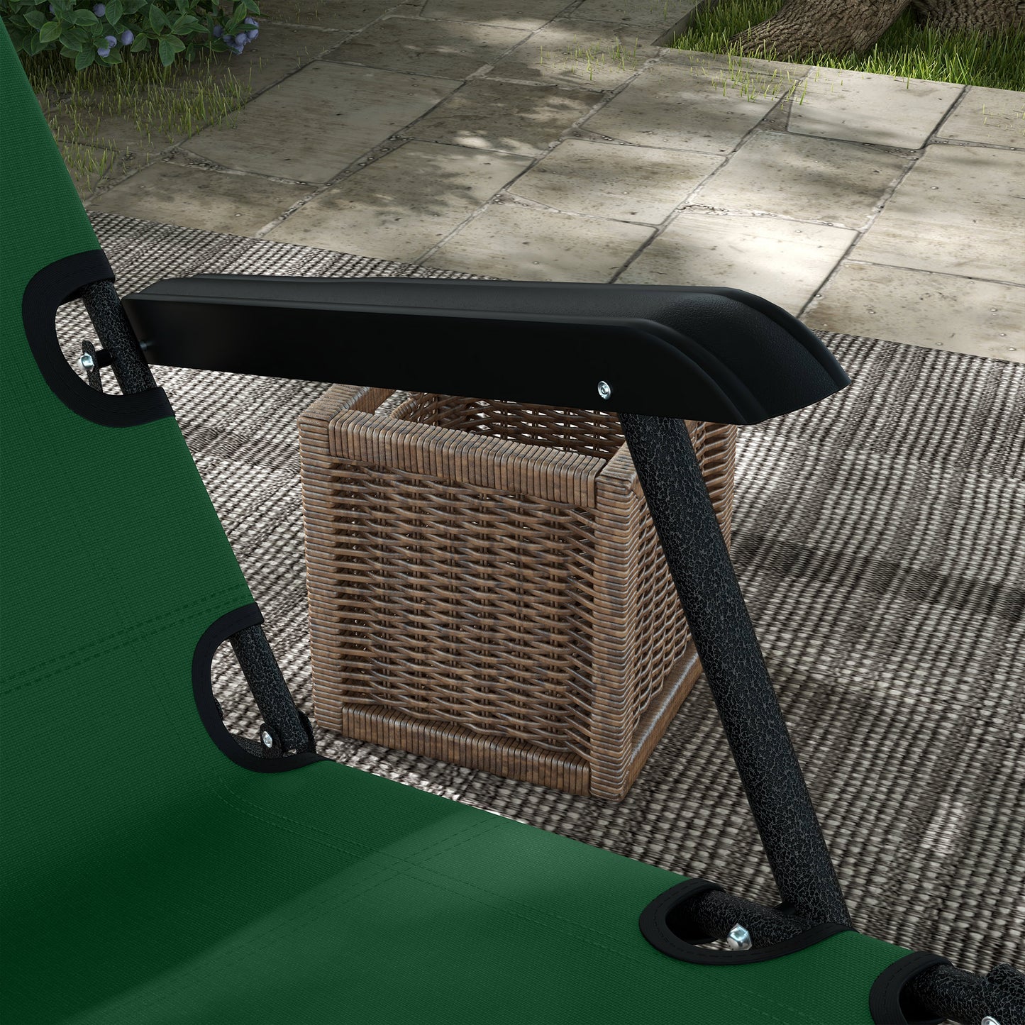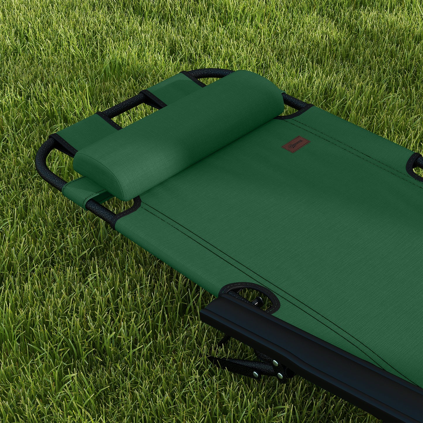 Outsunny 2 in 1 Sun Lounger Folding Reclining Chair Garden Outdoor Camping Adjustable Back with Pillow, Green