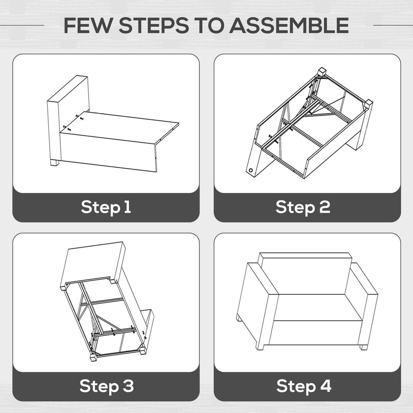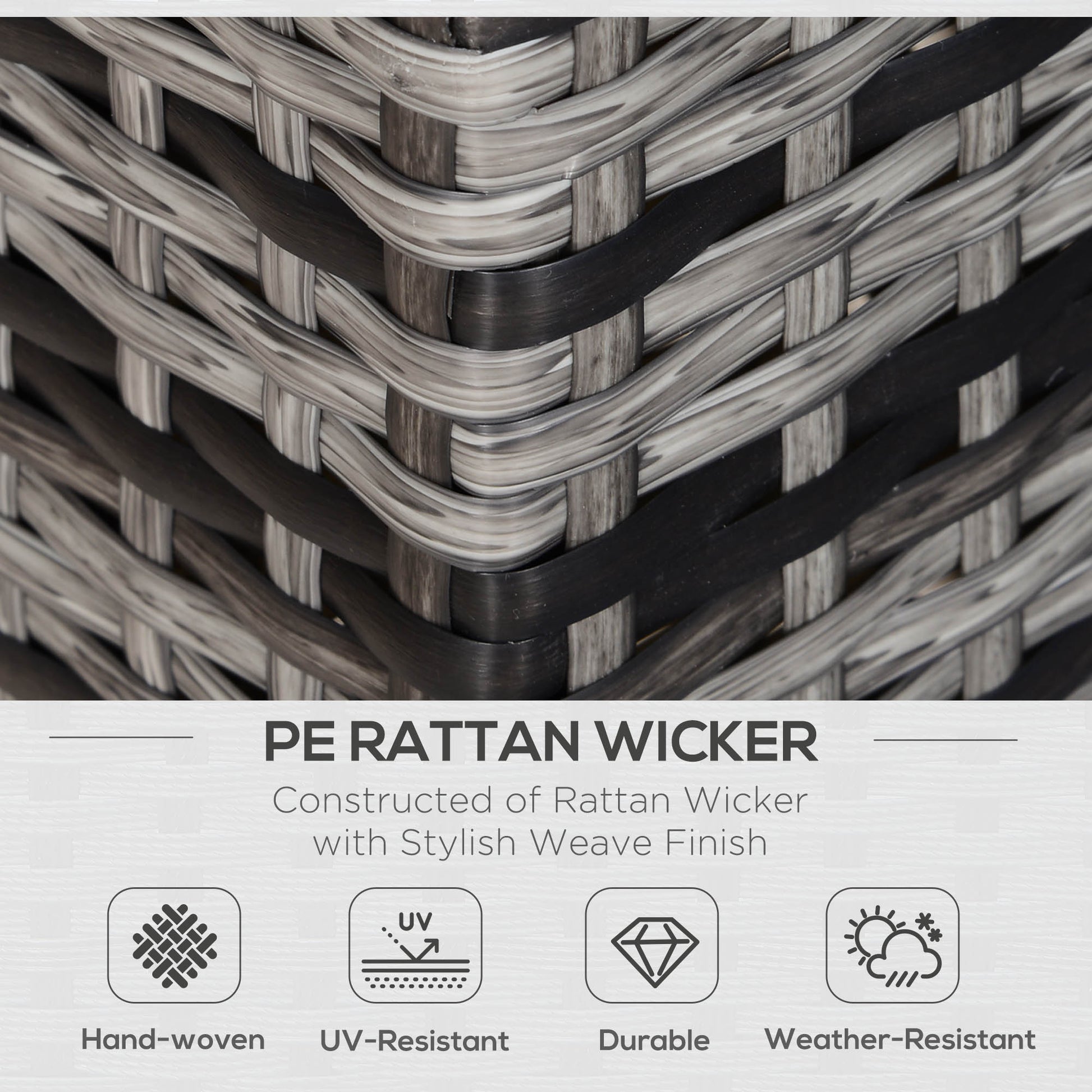 Outsunny 2 Seater Rattan Sofa Chair All-Weather Wicker Weave Chair Outdoor Garden Patio Furniture - Grey