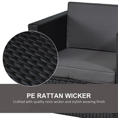 Outsunny 3 pcs PE Rattan Garden Furniture Patio Bistro Set Weave Conservatory Sofa Table and Chairs Set Black