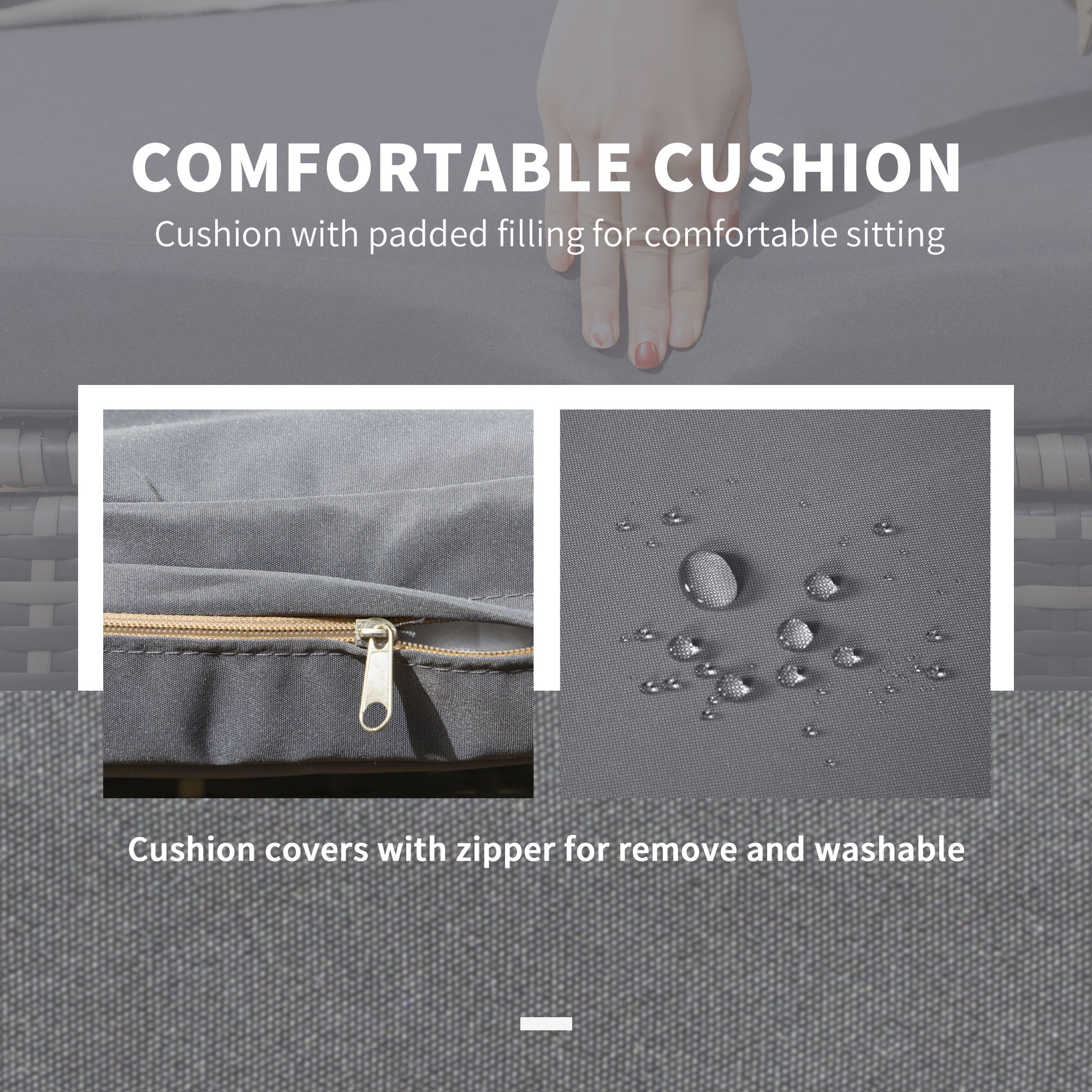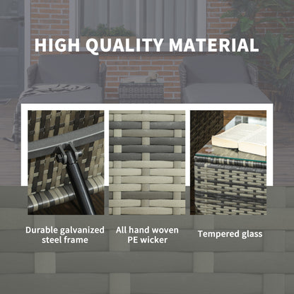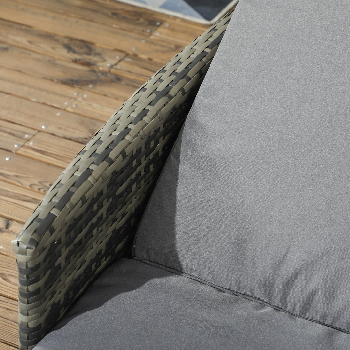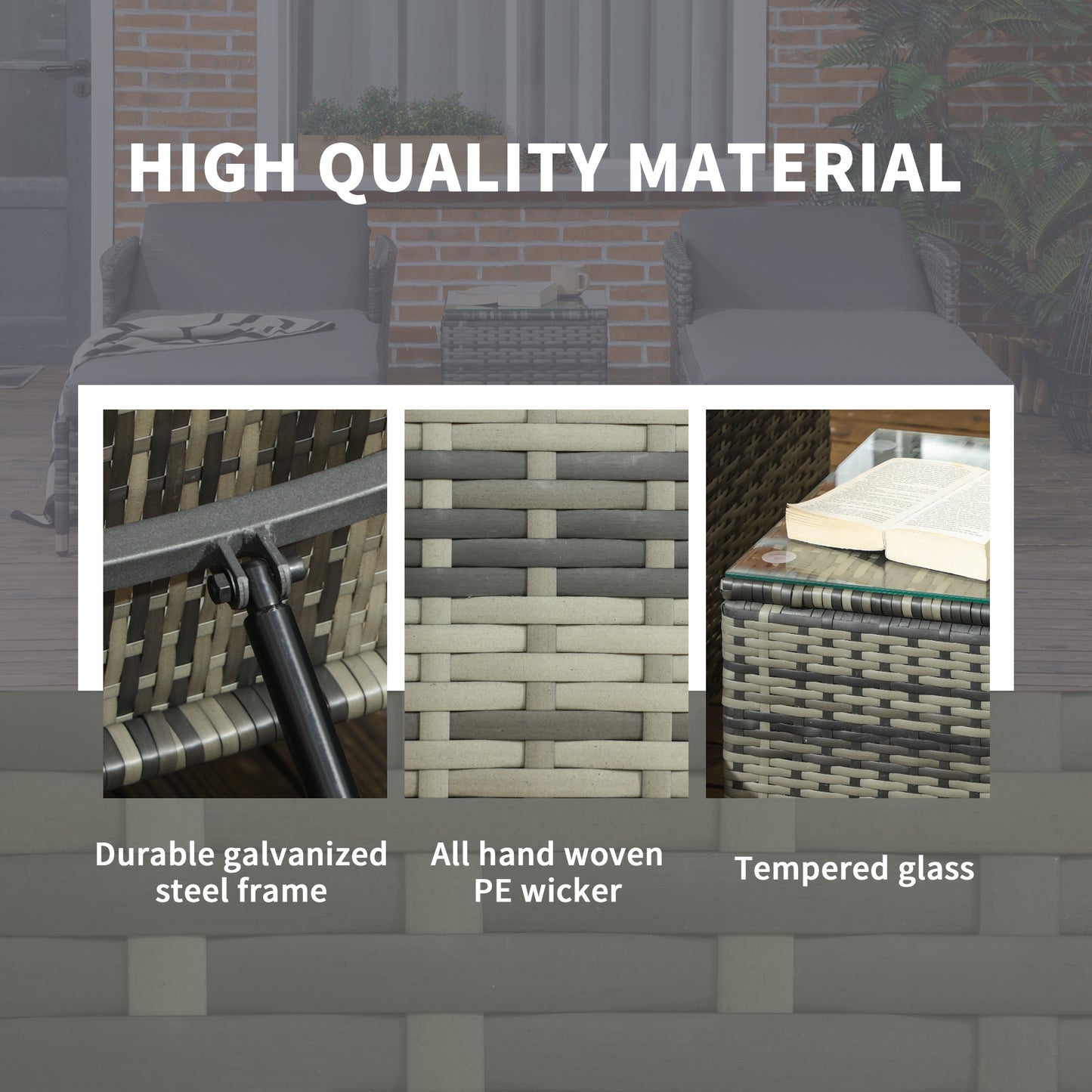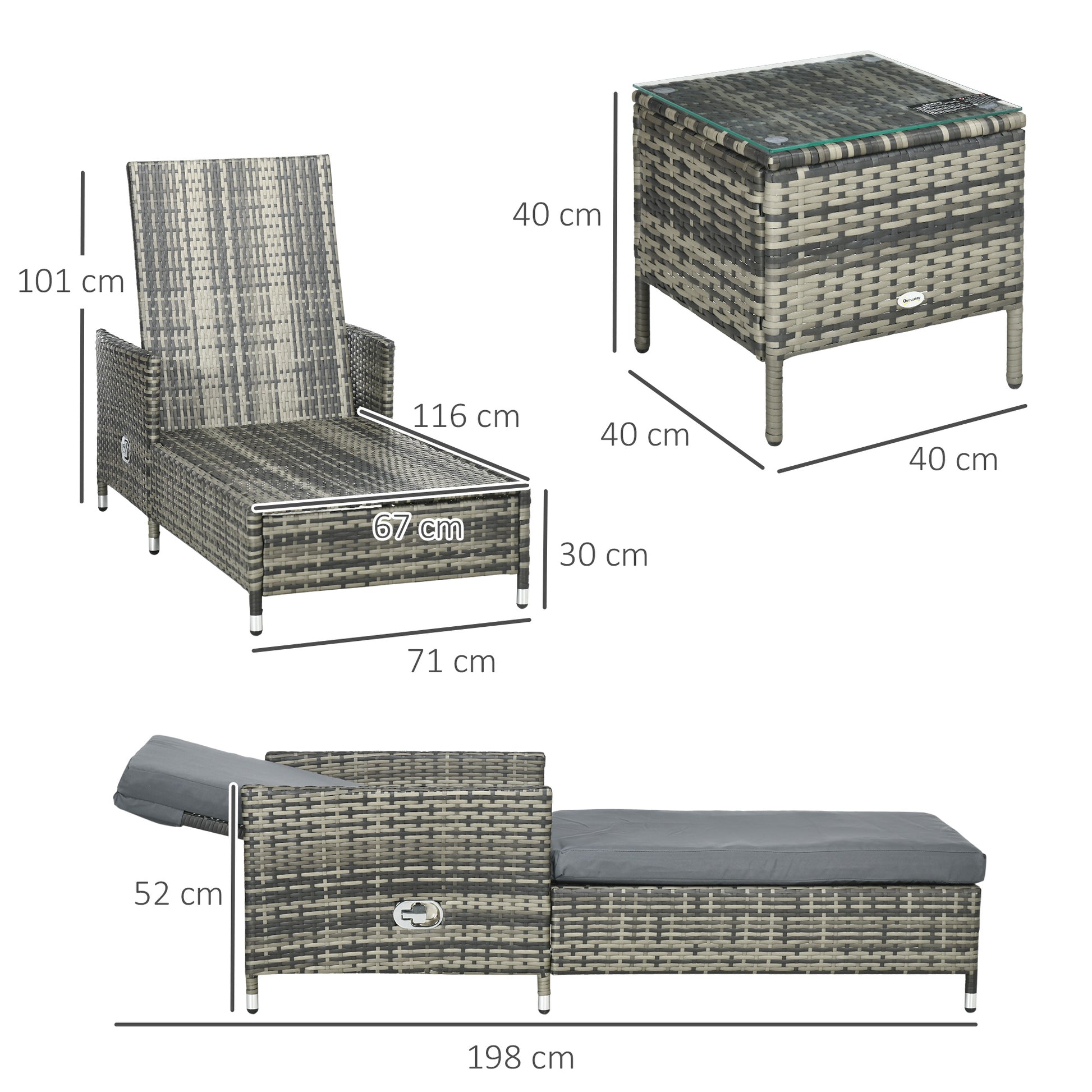 Outsunny 3-Pieces Rattan Sun Lounger, Patio Chaise Lounge Chair Set with Adjustable Backrest, Soft Cushions, Glass Top Table, Grey