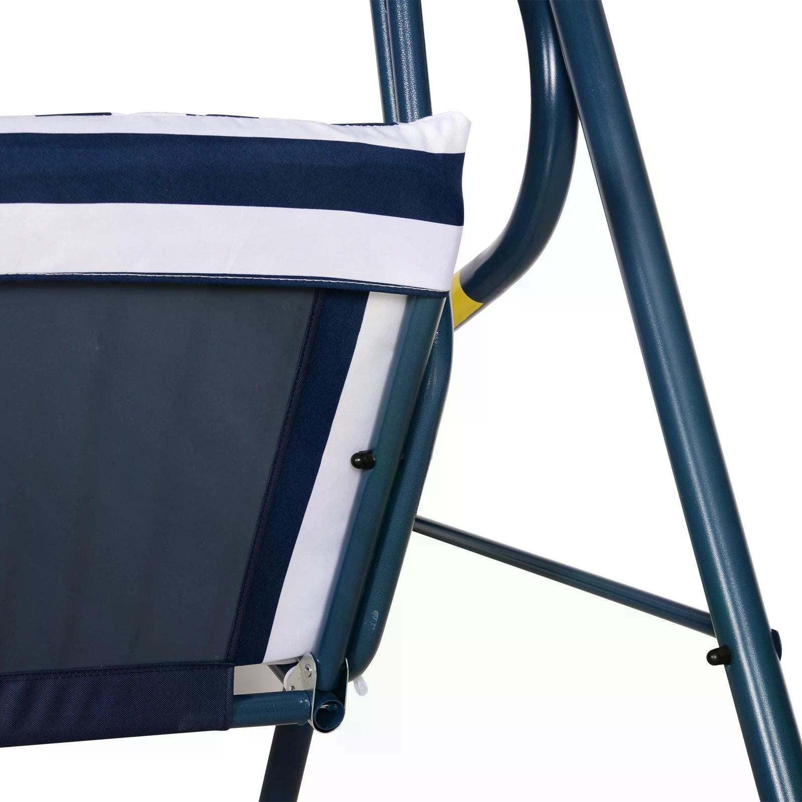 Outsunny 3 Seater Garden Swing Chair Outdoor Garden Bench with Adjustable Sun Cover and Metal Frame - Blue Stripes