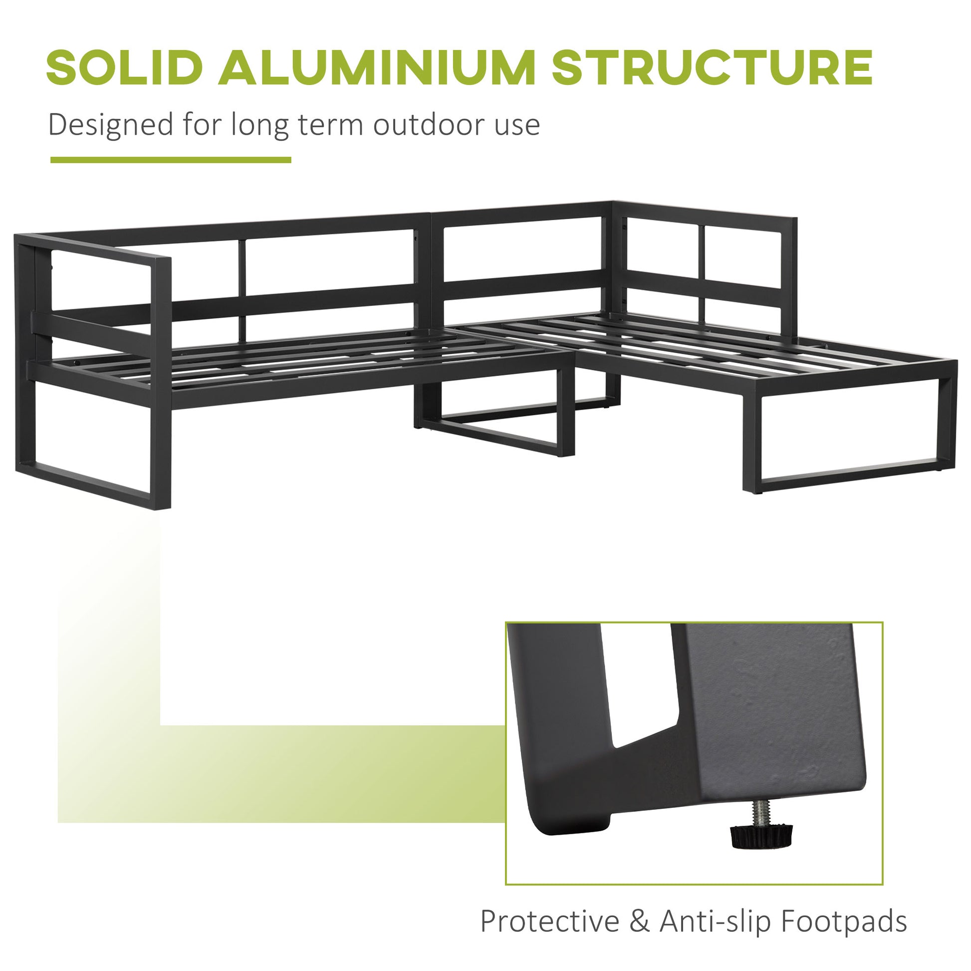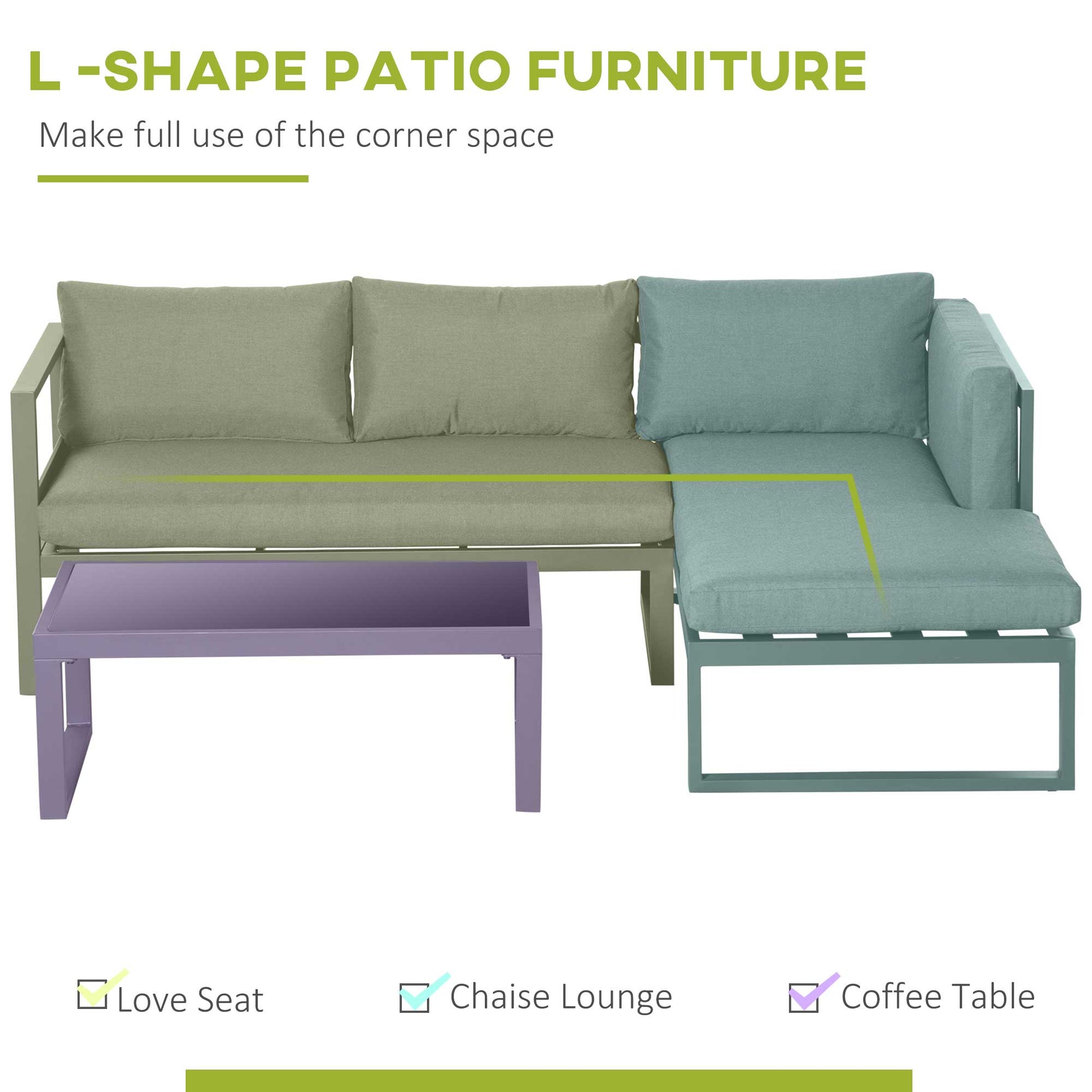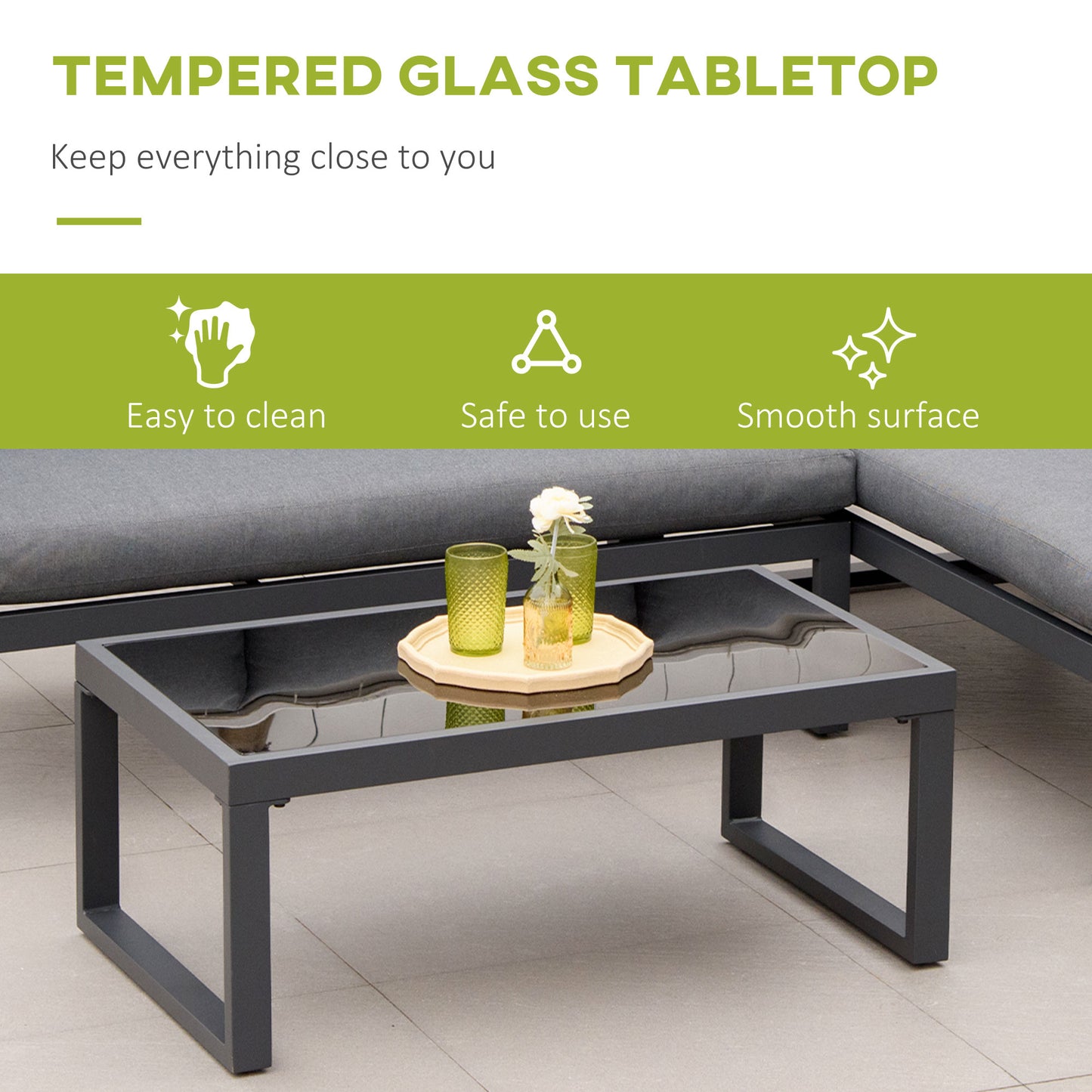 Outsunny 3-Seater L-shape Garden Corner Sofa Set with Padded Cushions, Outdoor Conversation Furniture Set with Glass Coffee Table, Grey