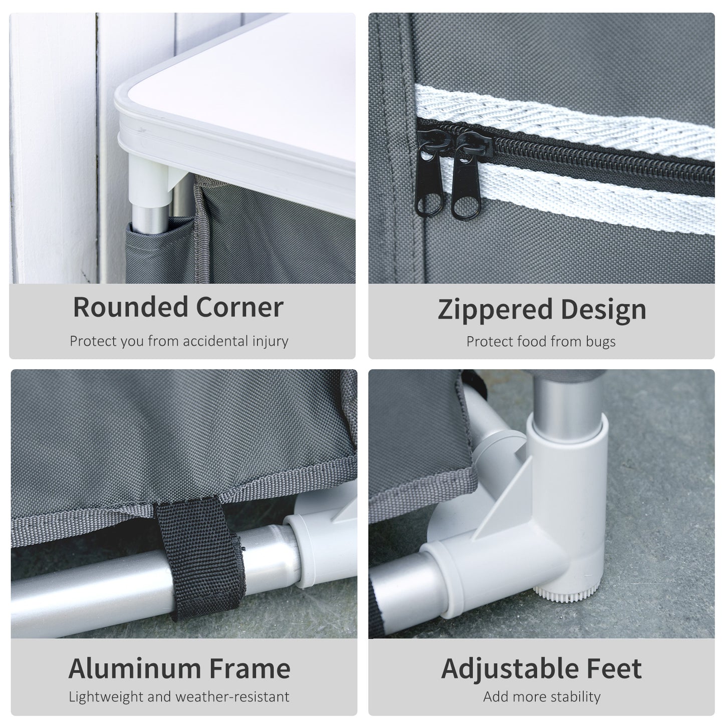 Create unforgettable memories with our Outsunny camping kitchen station. Easy to set up and store, it's perfect for picnics, BBQs, and more. Buy now and make outdoor cooking a breeze!