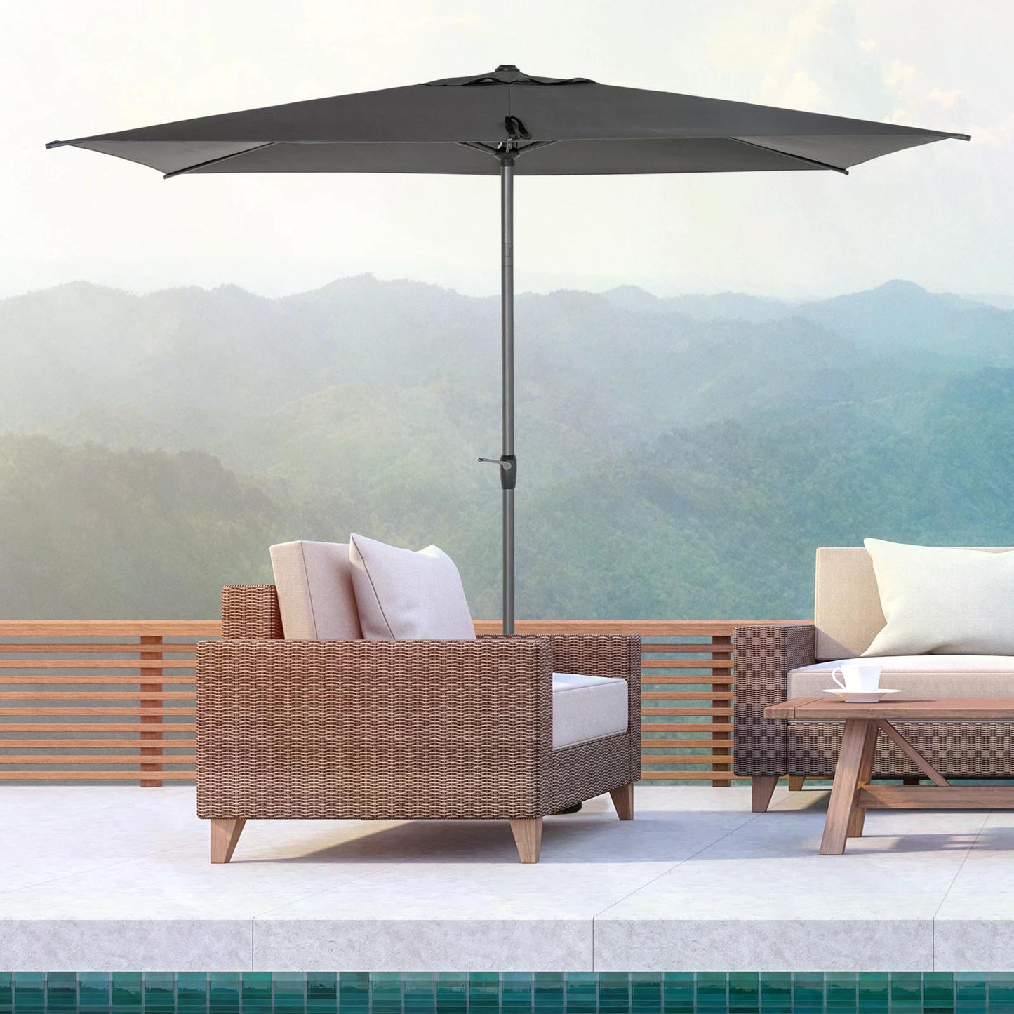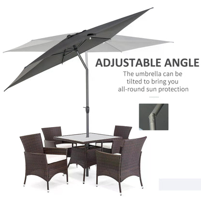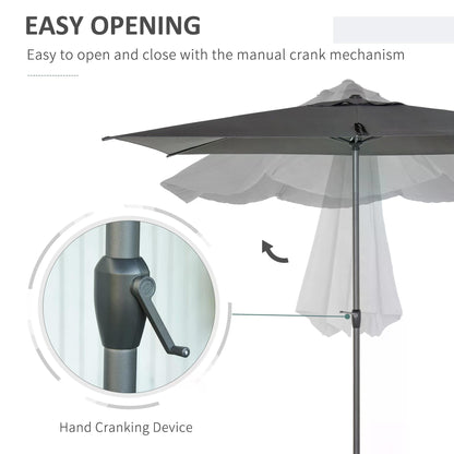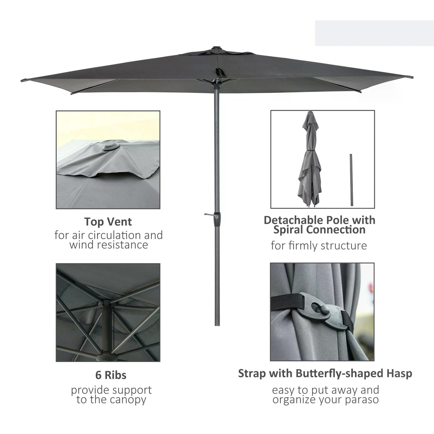 Outsunny 3 x 2m Garden Parasol Patio Sun Umbrella Canopy Rectangular Sun Shade Aluminium Crank Tilt Mechanism, Dark Grey