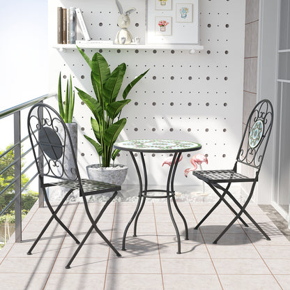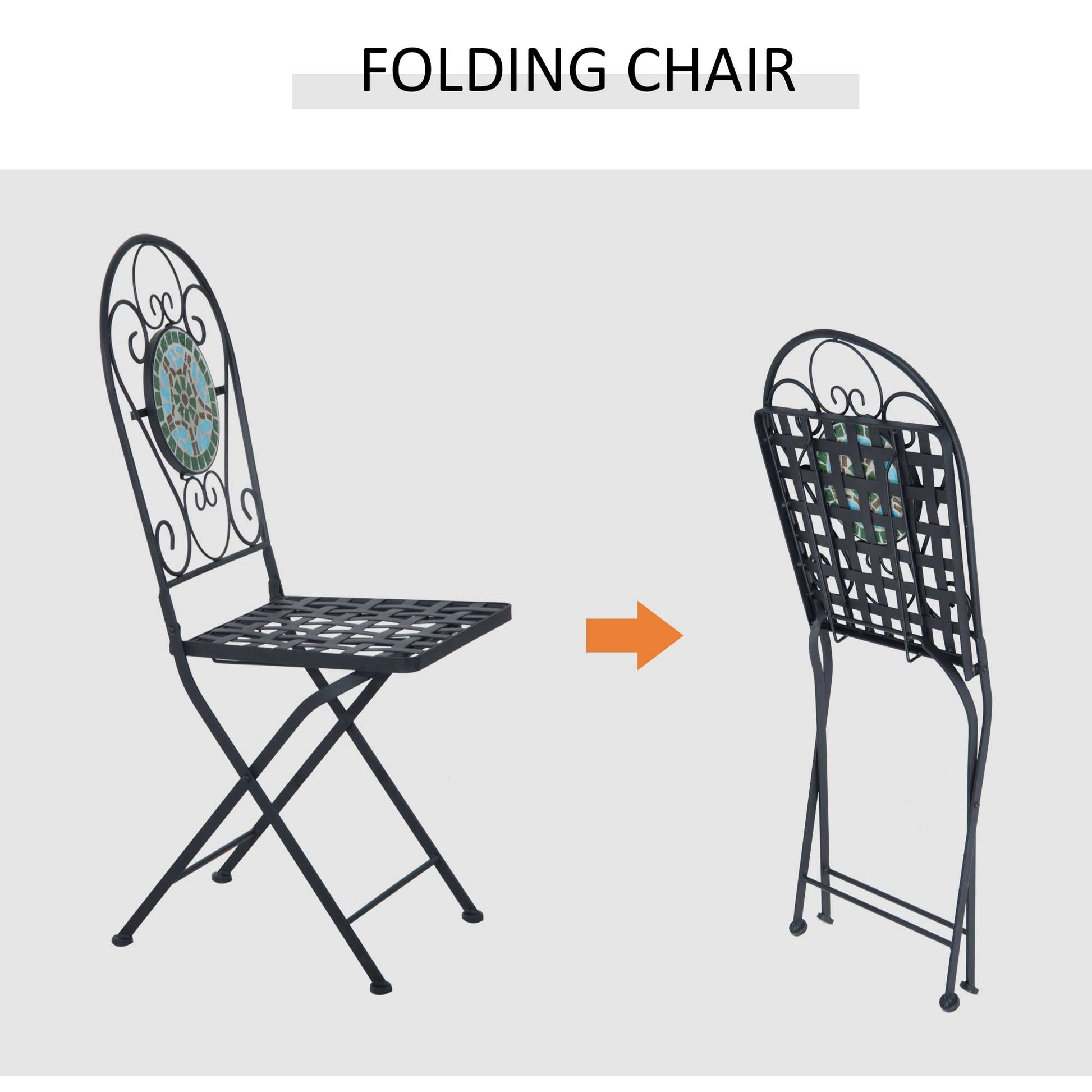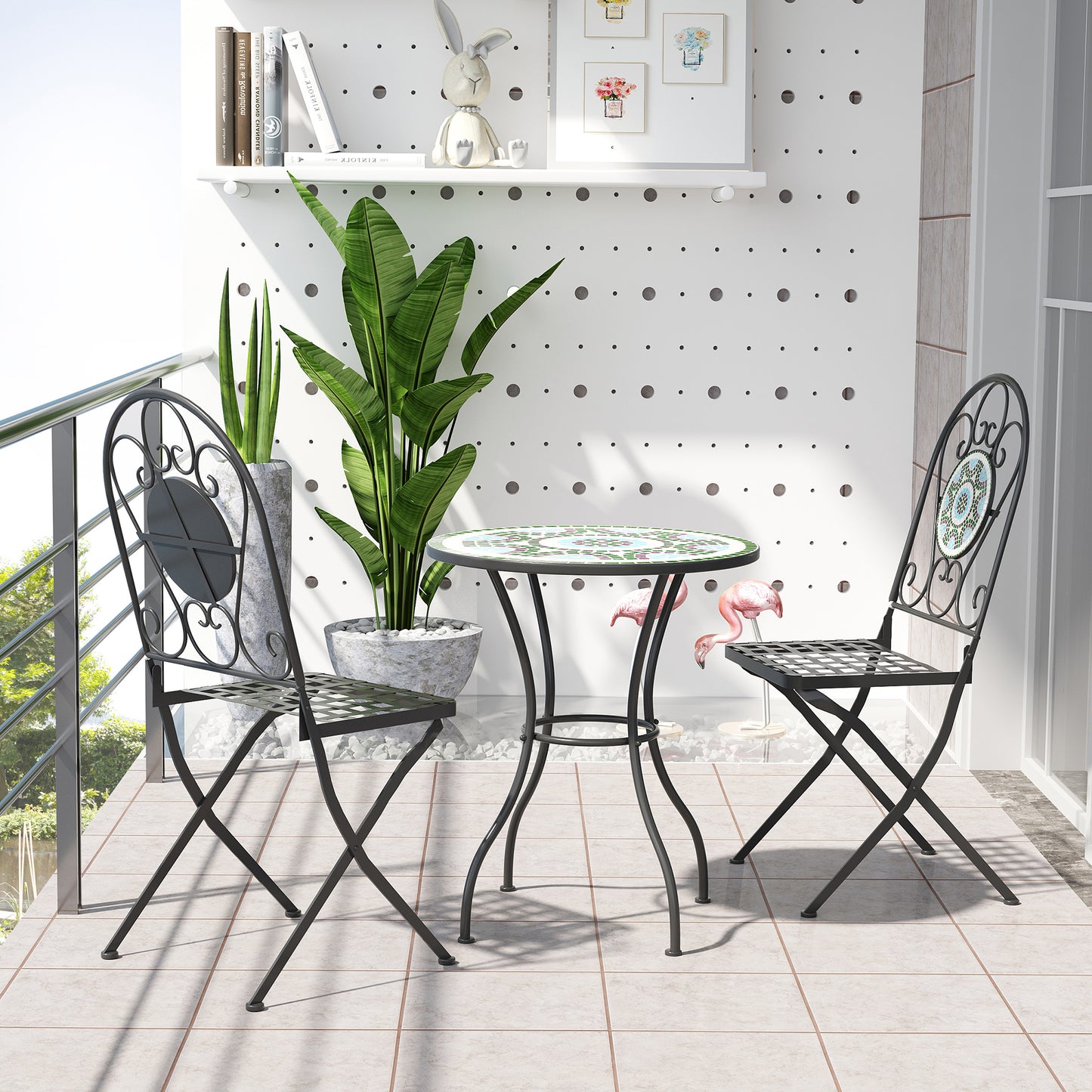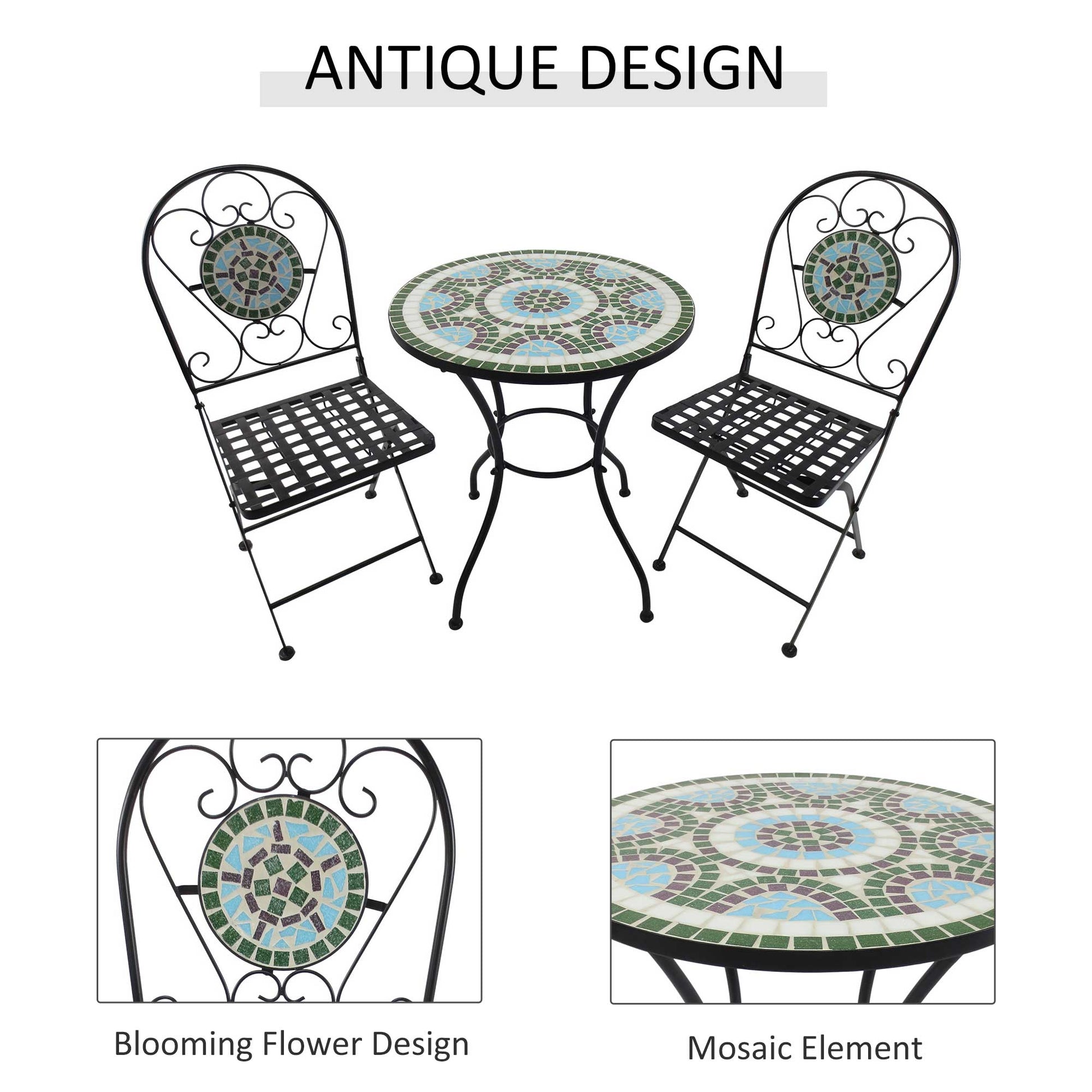 Outsunny 3pc Bistro Set Metal Dining Set Mosaic Garden Table 2 Seater Folding Chairs Patio Furniture Outdoor