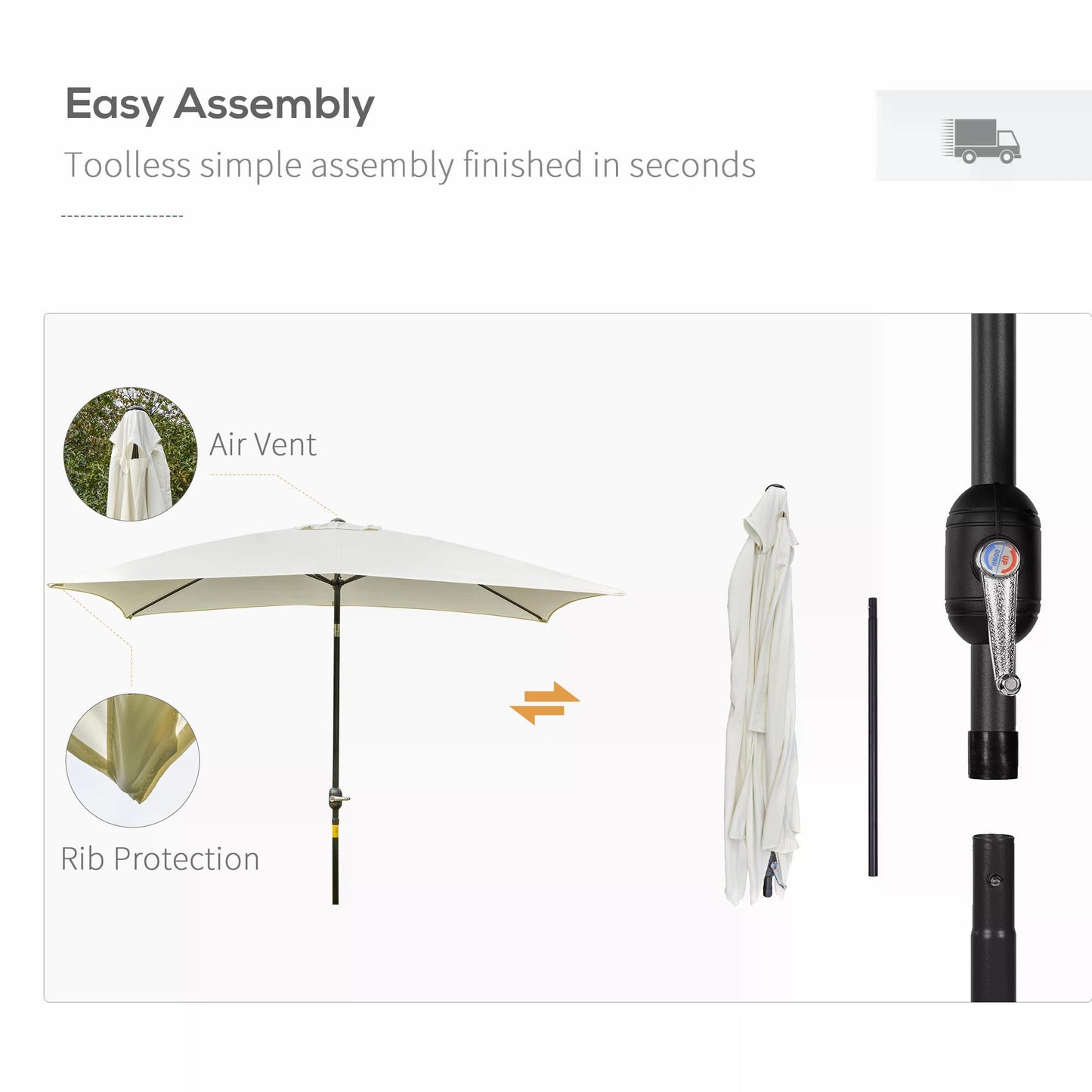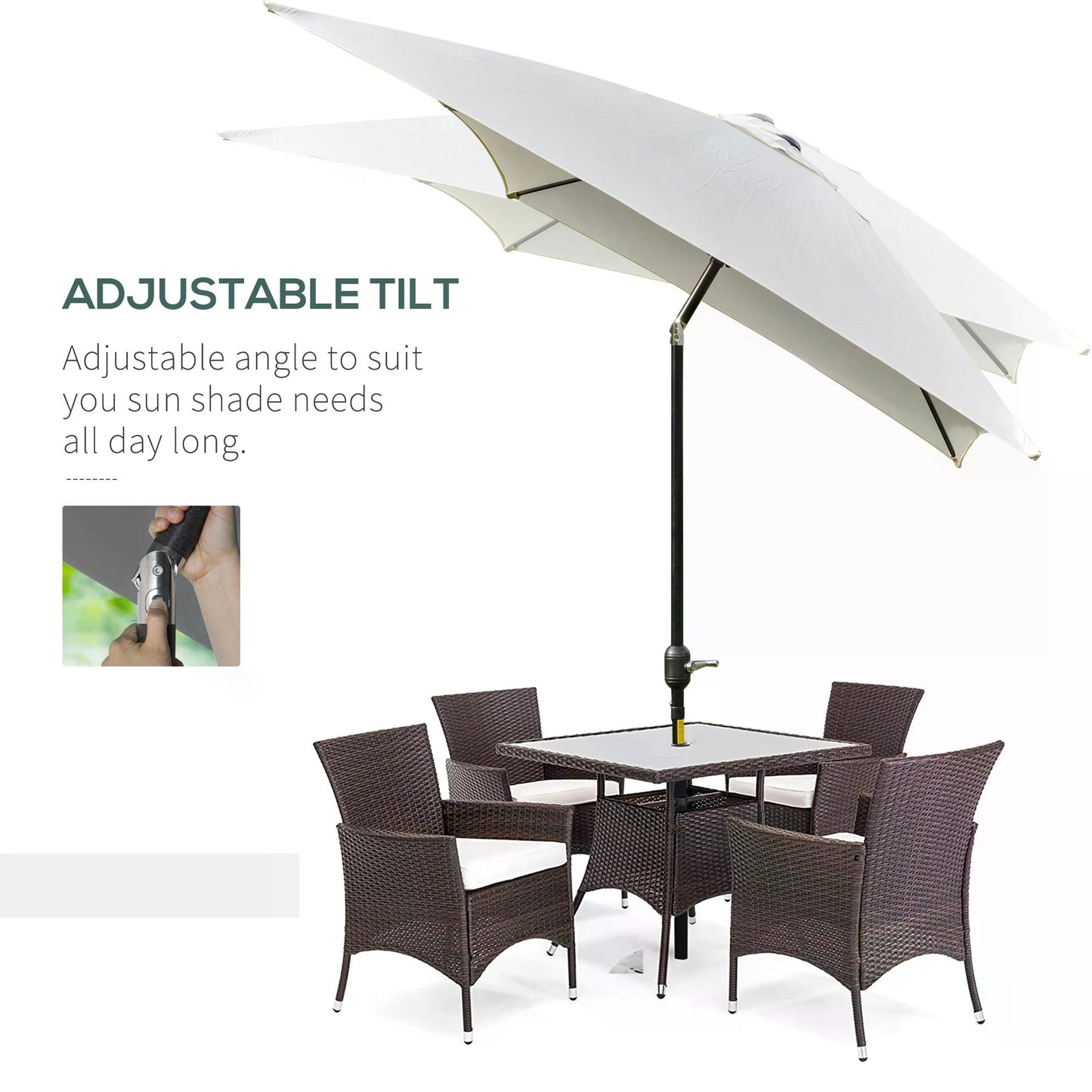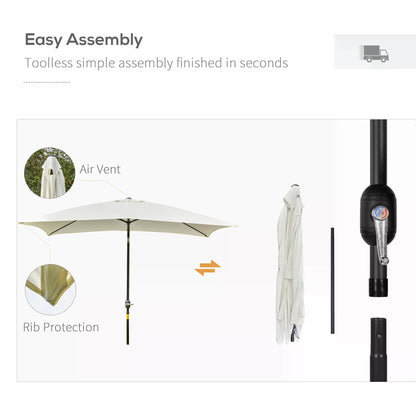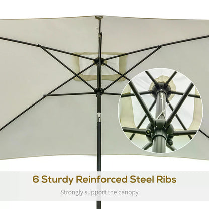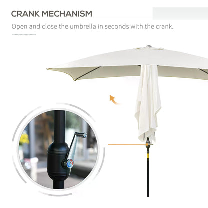 Outsunny 3x2m Garden Parasol Umbrella, Canopy with Aluminum Tilt, Crank Rectangular Sun Shade Steel, Cream White