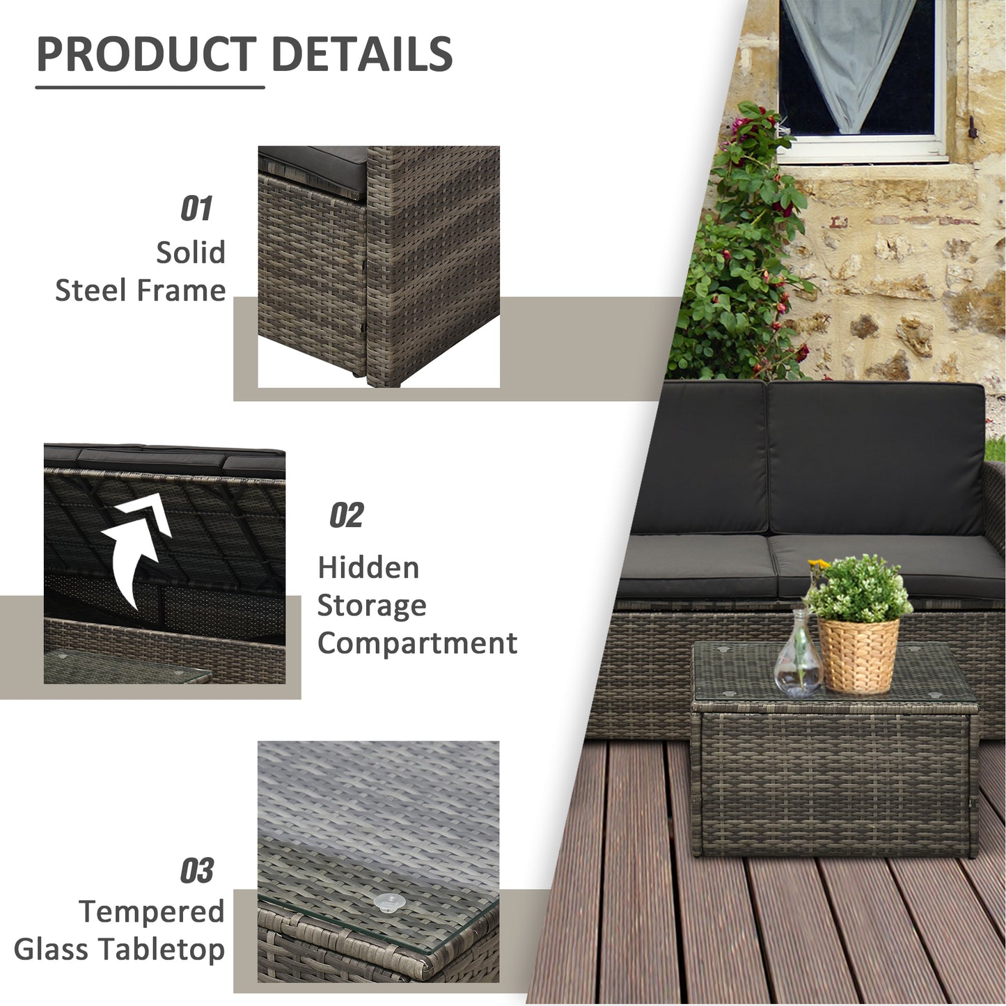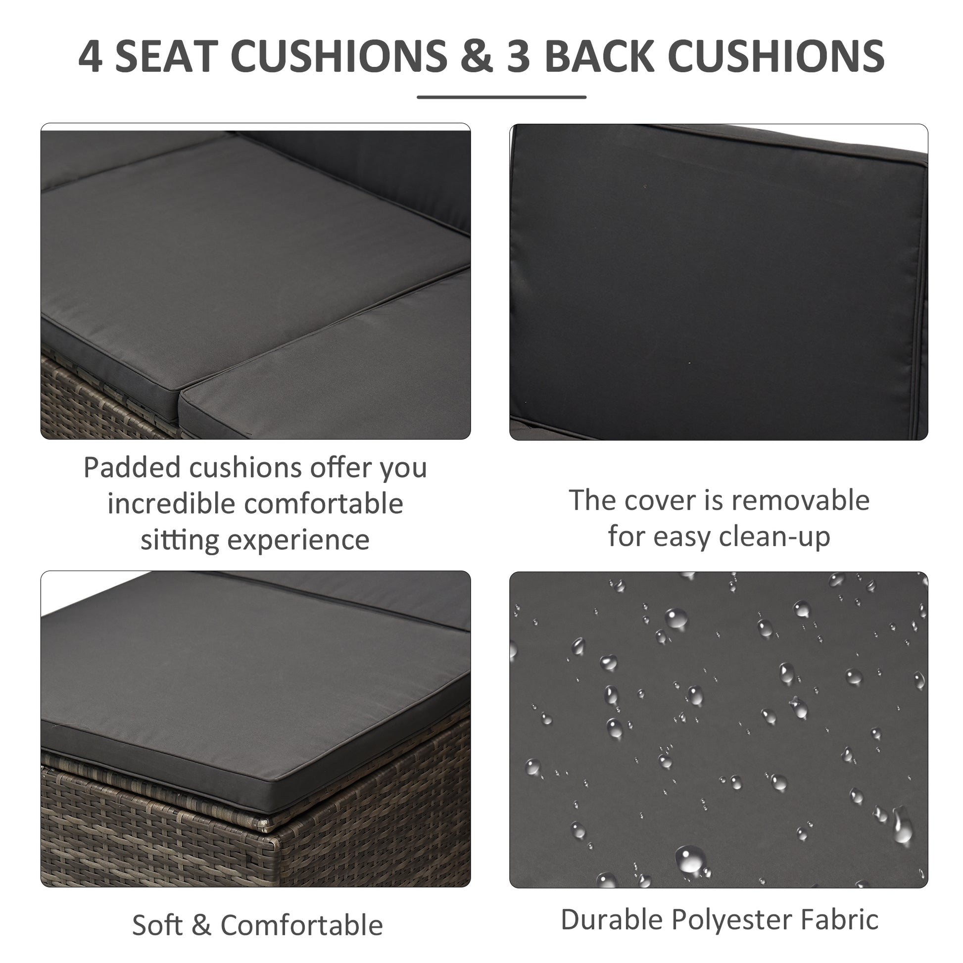 Outsunny 4-Seater Outdoor Garden Rattan Furniture Set with Table Grey