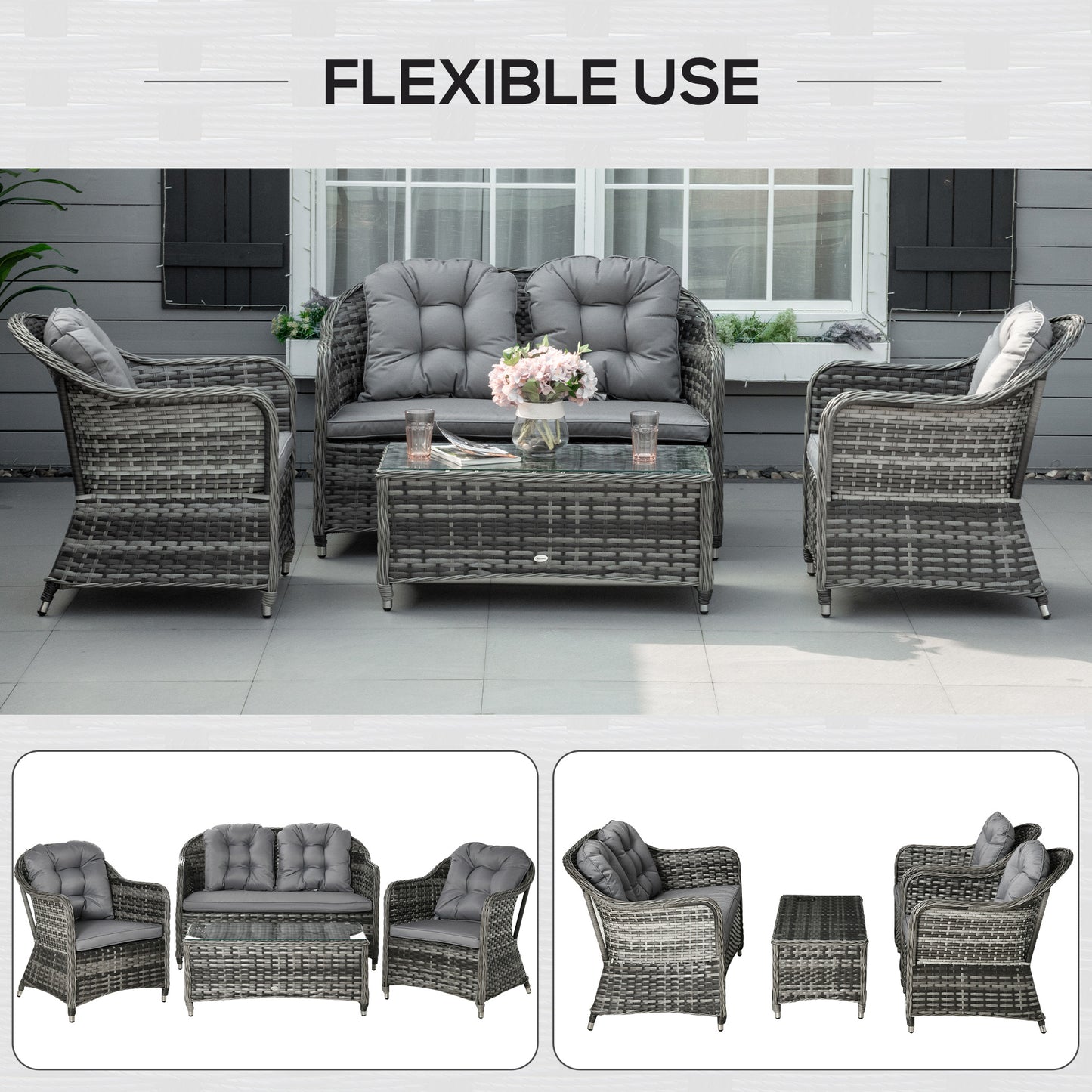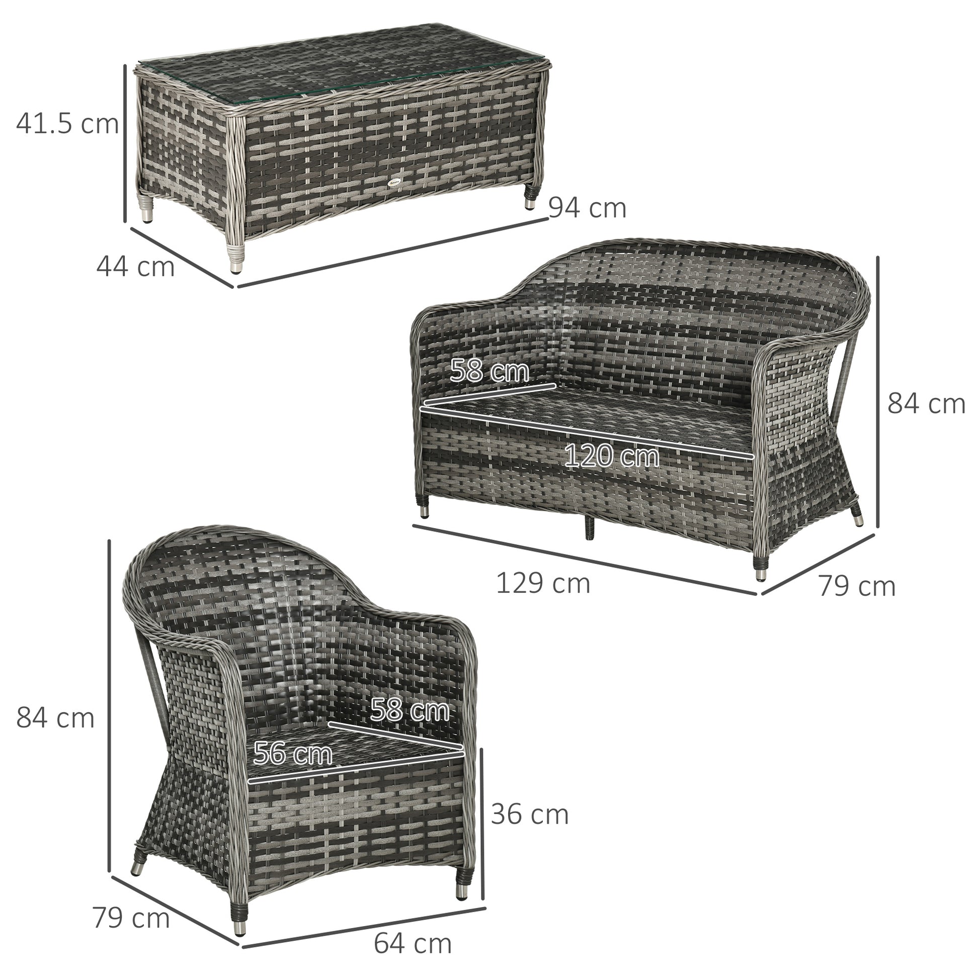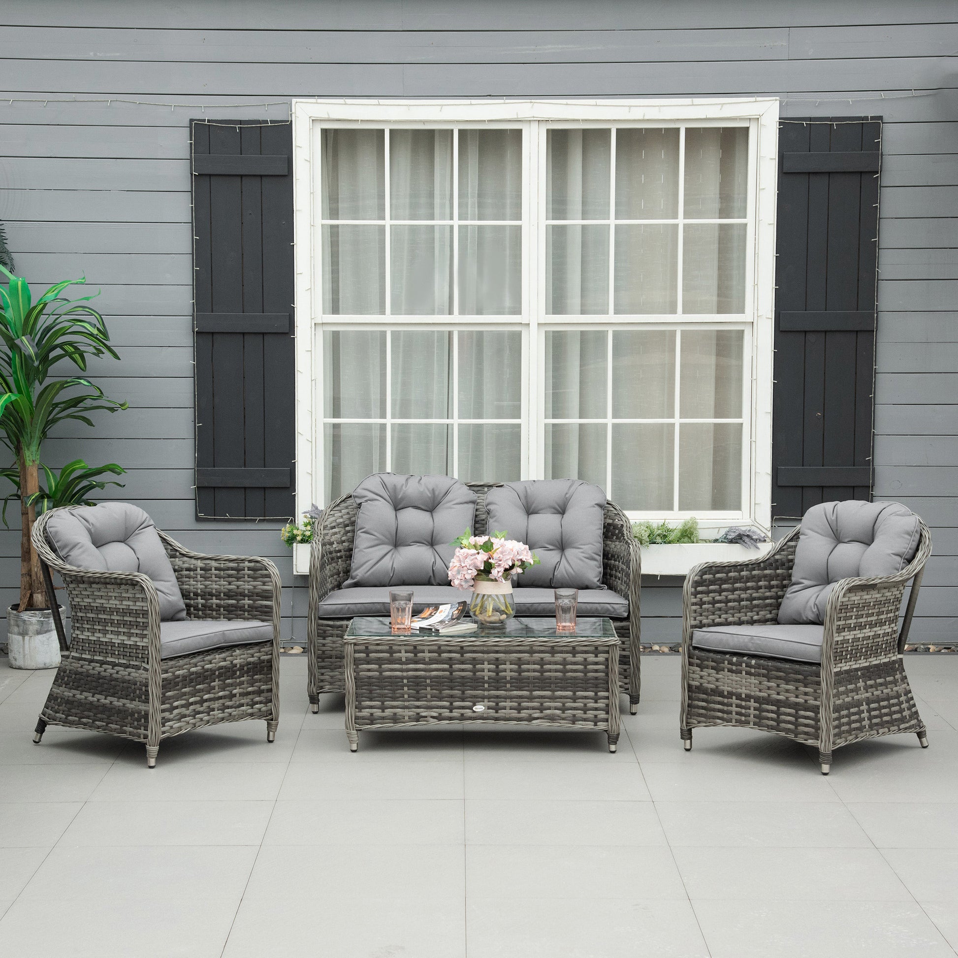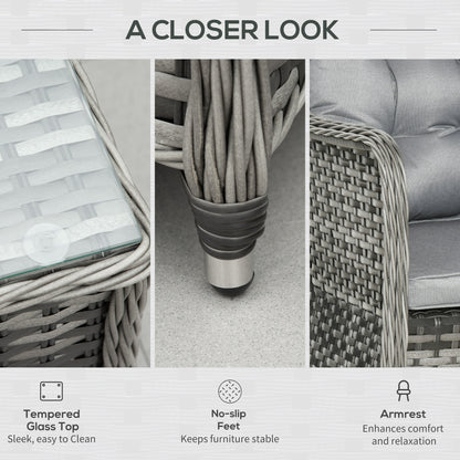 Outsunny 4-Seater PE Rattan Wicker Sofa Set Outdoor Conservatory Furniture Lawn Patio Coffee Table with Cushion - Grey