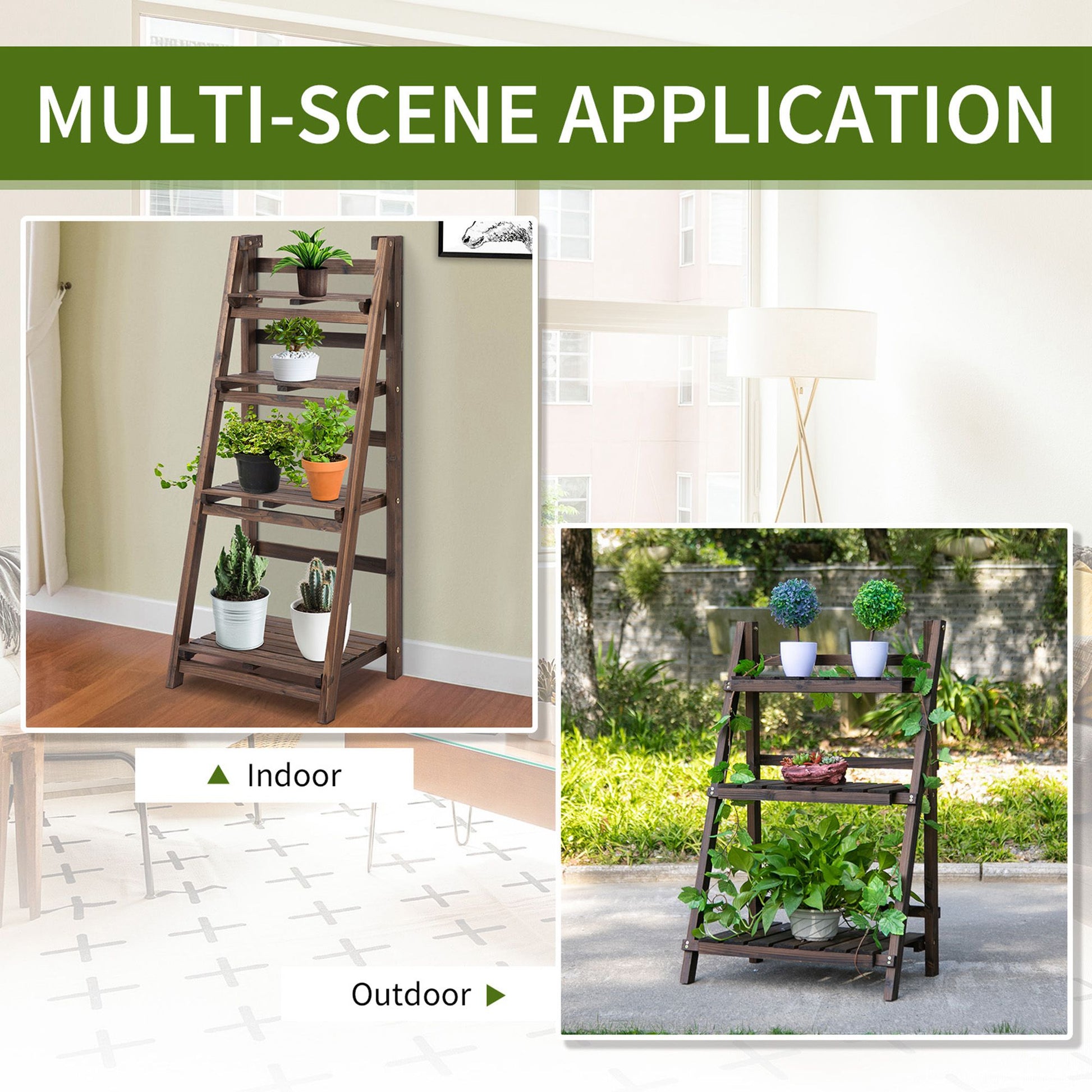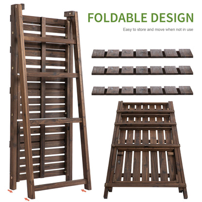 Outsunny 4-Tier Wooden Plant Shelf Foldable Plant Pots Holder Stand Indoor Outdoor 45L x 35W x 108H cm