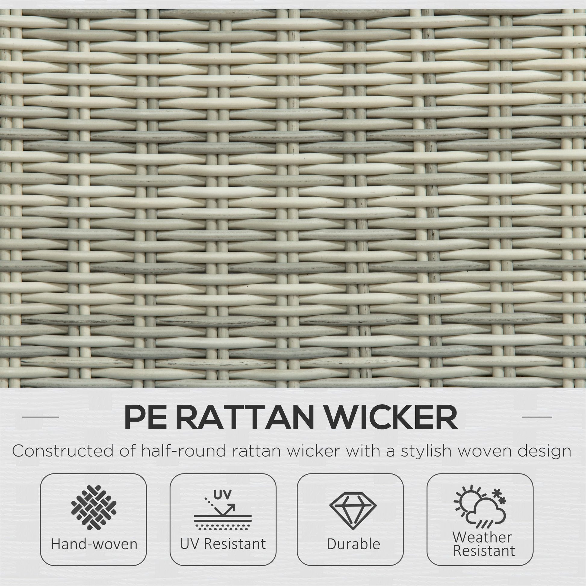Outsunny 5 Pieces PE Rattan Sun Lounger Set, Outdoor Half-round Wicker Recliner Sofa Bed with Glass Top Two-tier Table and Footstools, Mixed Grey