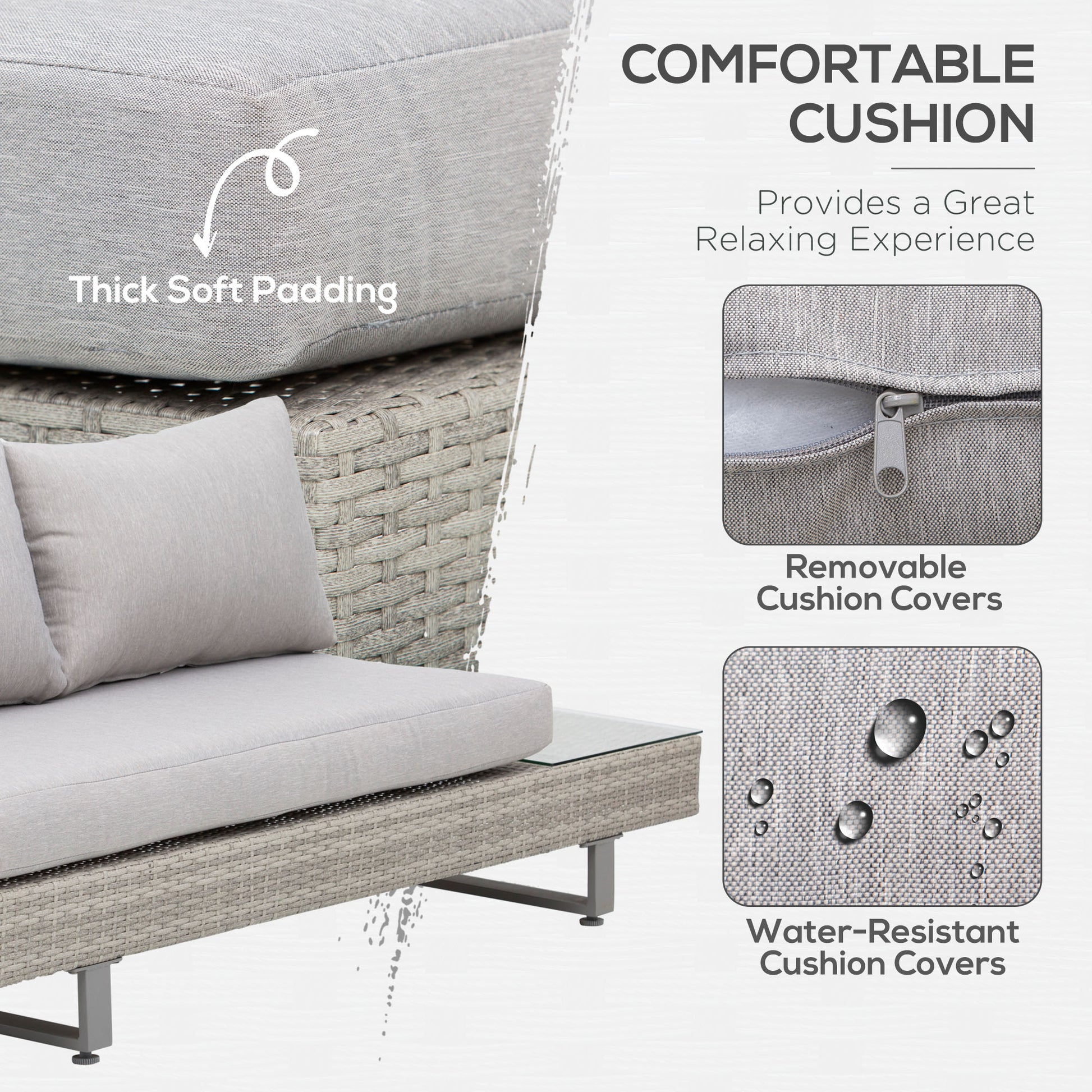 This Product Is Ideal For You If You Want a stylish and comfortable outdoor seating solution. The outsunny 5 seater grey rattan conservatory corner sofa set with coffee table includes a two-seater, three-seater, and handy table, offering plenty of room to relax. Sink into the plush cushions for long-lasting comfort, while the removable, washable covers keep maintenance easy. The powder-coated metal frame wrapped in weather-resistant PE wicker ensures durability, and the sturdy metal legs provide stability. Perfect for creating a cozy, industrial-chic outdoor space.