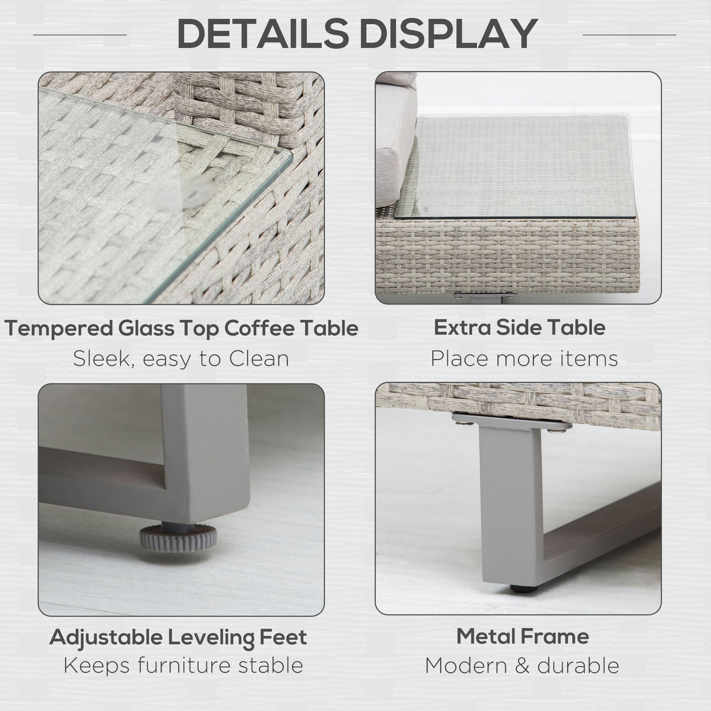 Outsunny 5-Seater Rattan Garden Furniture Wicker Conservatory Corner Sofa Set Chaise Lounge with Coffee Table, Side Table & Cushions - Grey