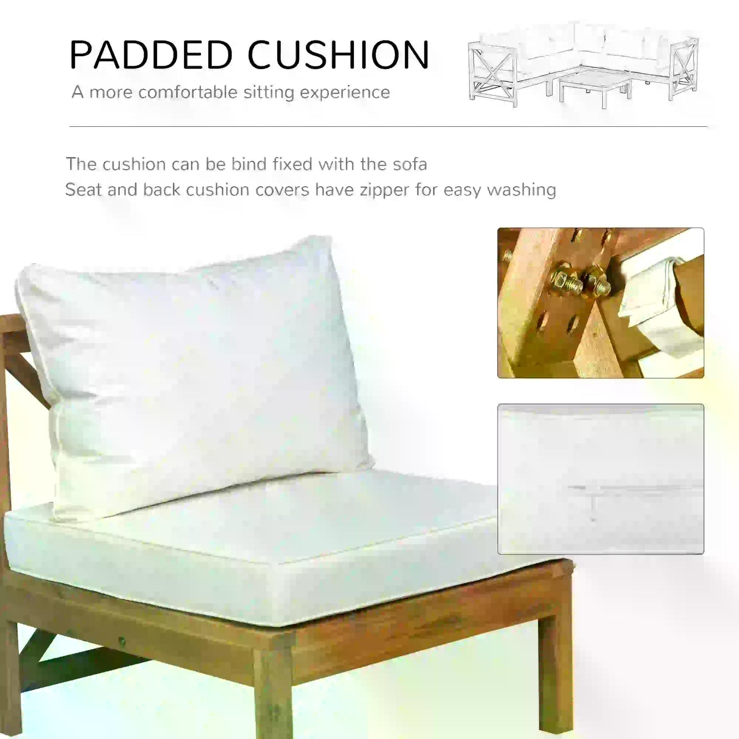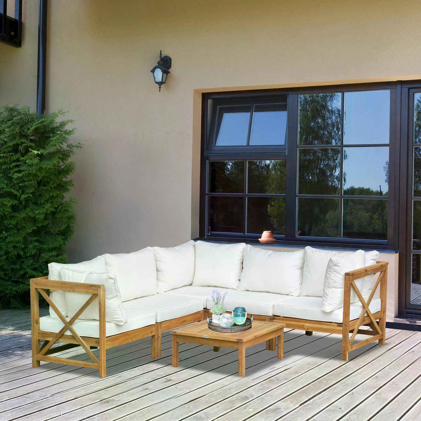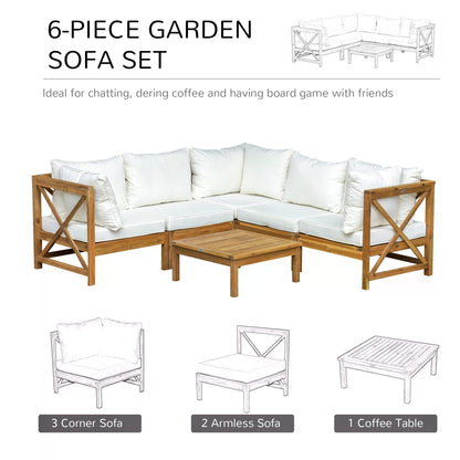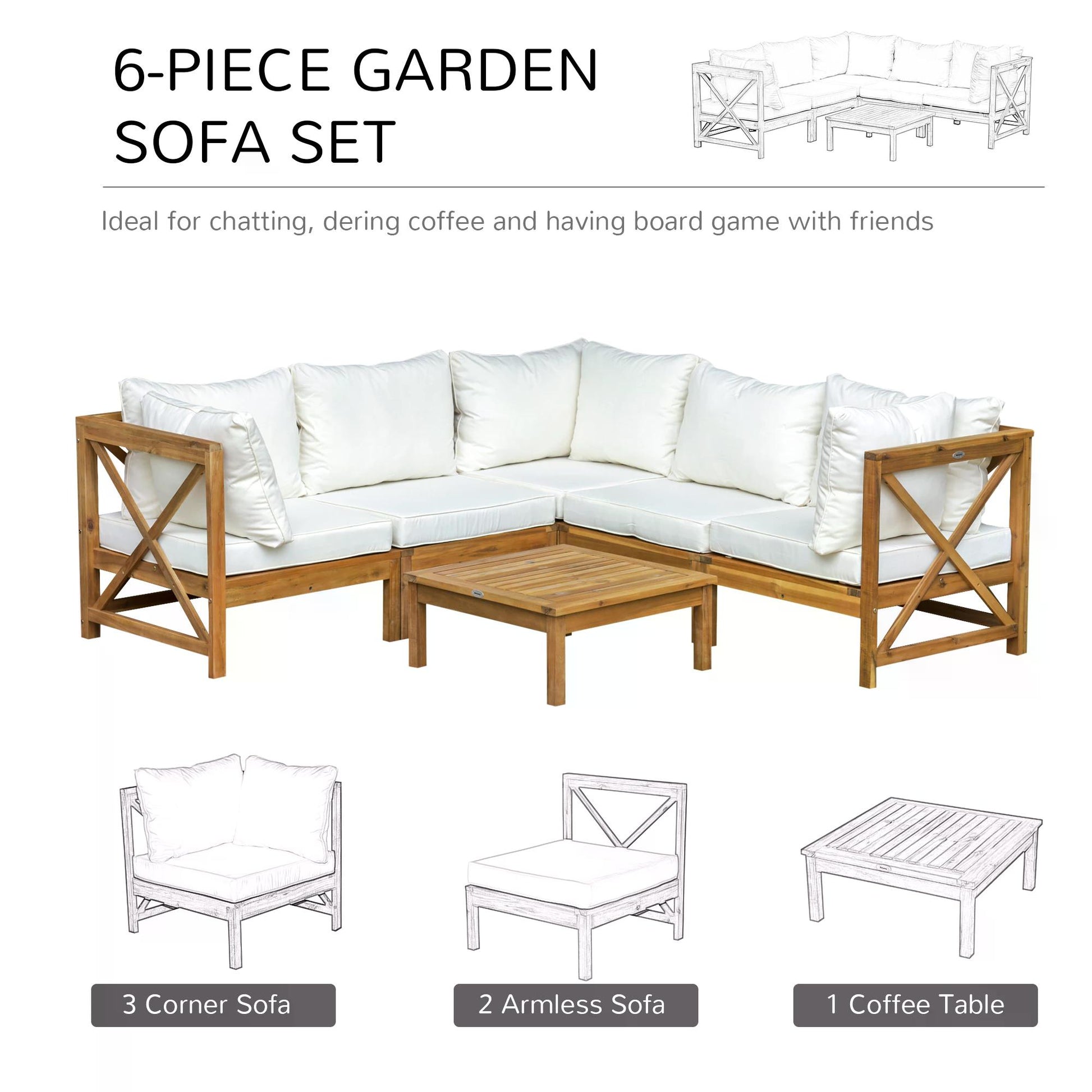 Outsunny 6pcs Patio Furniture Set Garden Sofa Set 1 Coffee Table Suitable with Cushions for Outdoor Indoor Balcony Poolside Acacia Wood Cream White