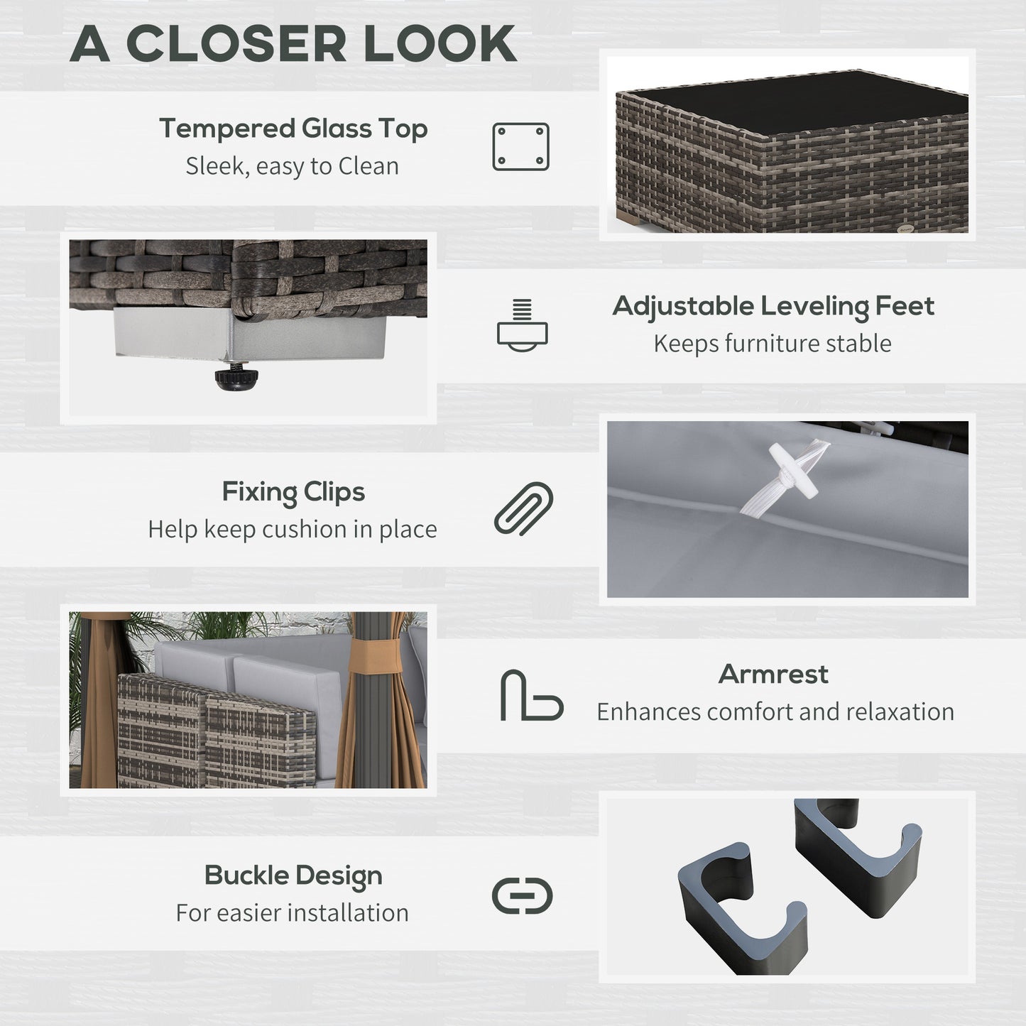 Outsunny 7 Pcs PE Rattan Garden Furniture Set with Thick Padded Cushion, Patio Corner Sofa Sets with Glass Coffee Table & Pillows, Mixed Grey