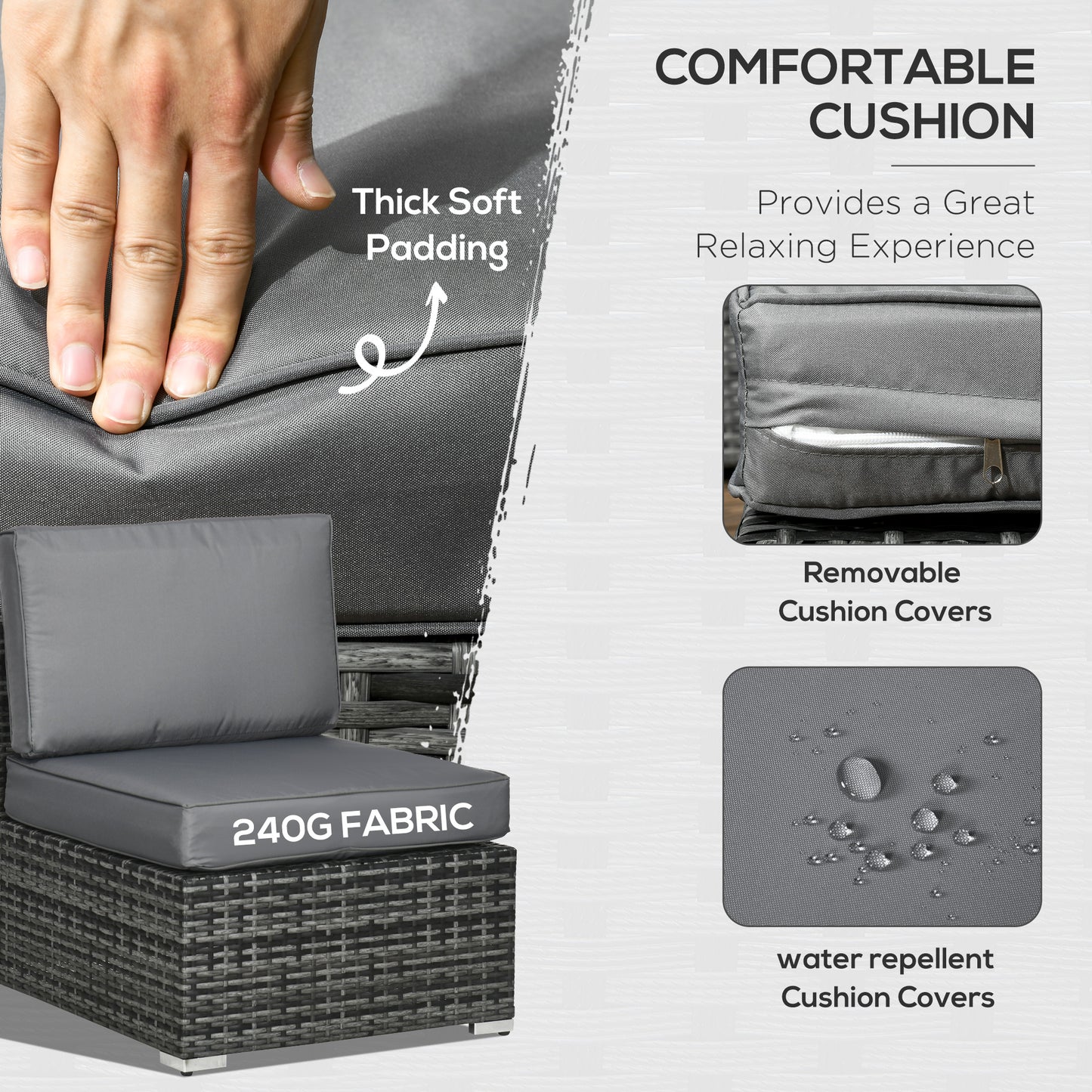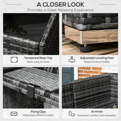 Outsunny 8 Pieces PE Rattan Corner Sofa Set Garden Furniture Set Patio Wicker Sofa Seater with Cushion Washable Cushion Cover Tempered Glass Table Grey