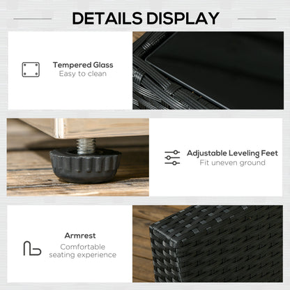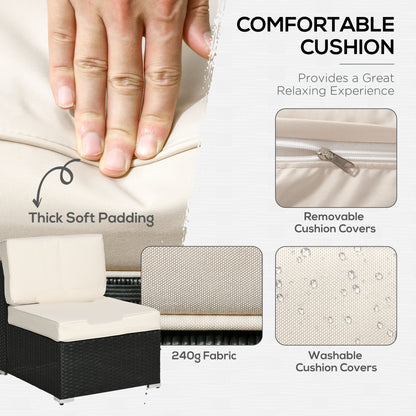 Outsunny 8 Pieces PE Rattan Corner Sofa Set, Outdoor Garden Furniture Set, Patio Wicker Sofa Seater with Cushion, Washable Cushion Cover, Black