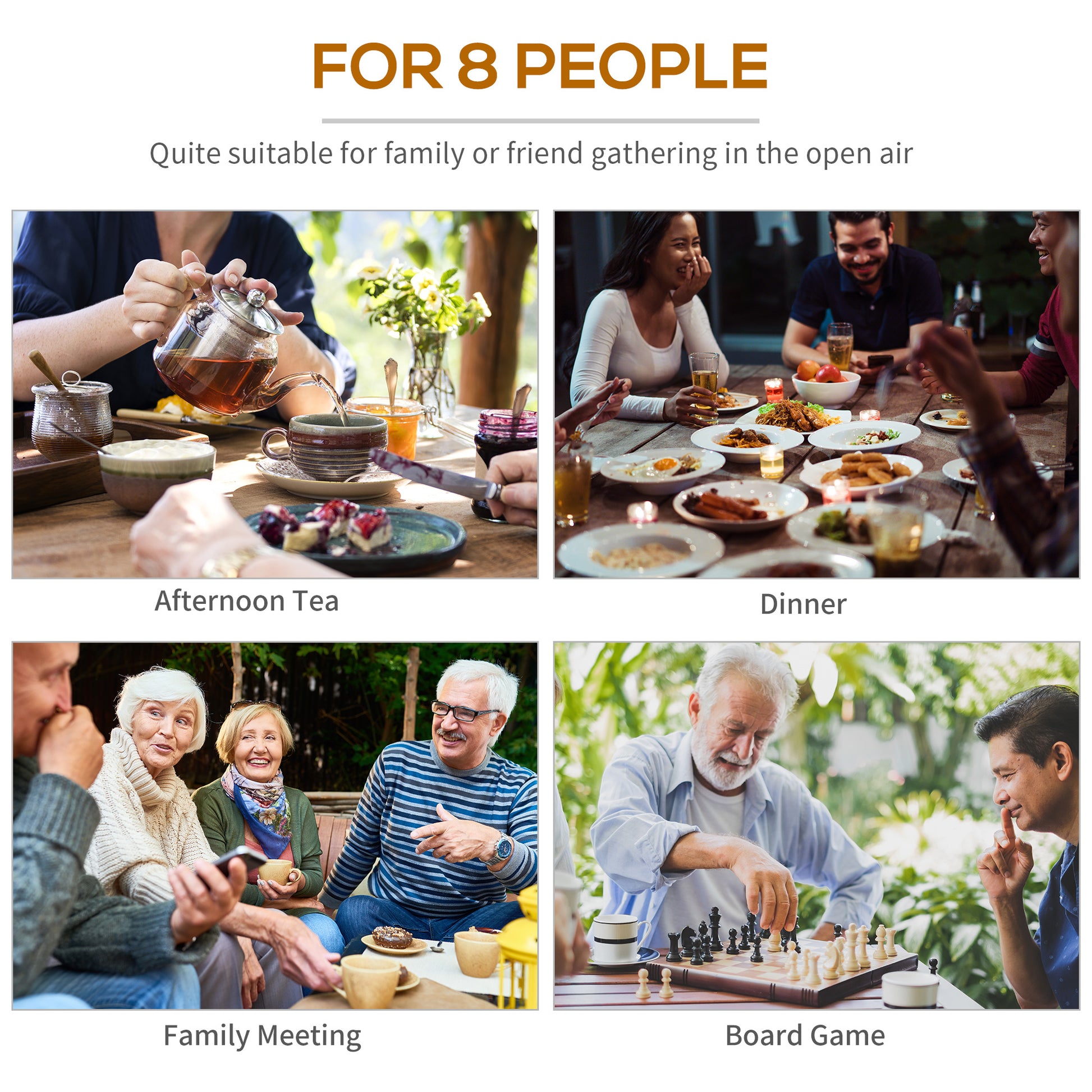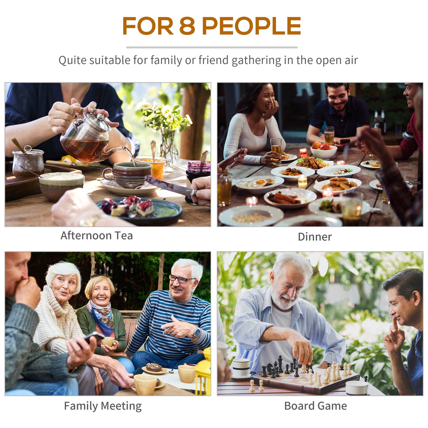 The Outsunny picnic table has an overall size of 178 x 70H cm, providing ample space for up to 8 people.