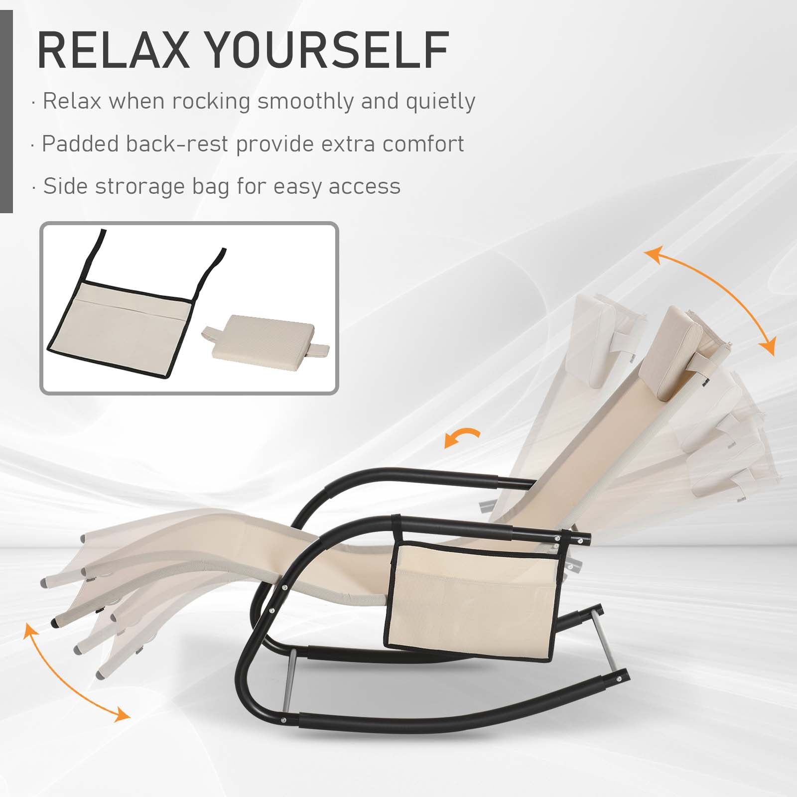 Outsunny Breathable Mesh Rocking Chair Patio Rocker Lounge for Indoor & Outdoor Recliner Seat with Removable Headrest for Garden and Patio Cream White