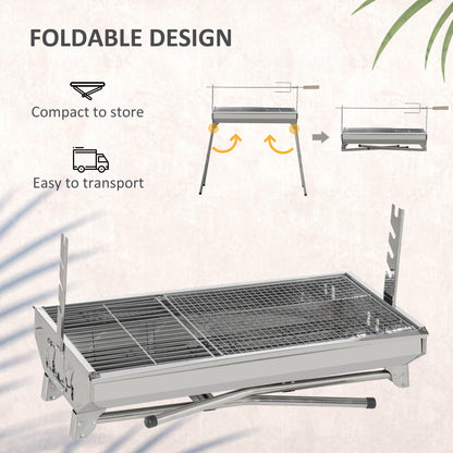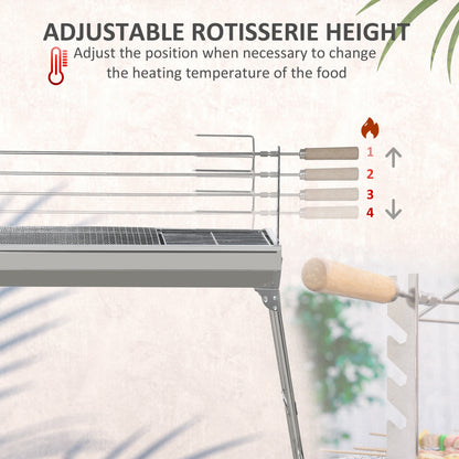 Outsunny Charcoal Grill Portable BBQ Rotisserie Roaster with Foldable Legs, Chicken Spit Roast Machine for Outdoor Picnic Camping