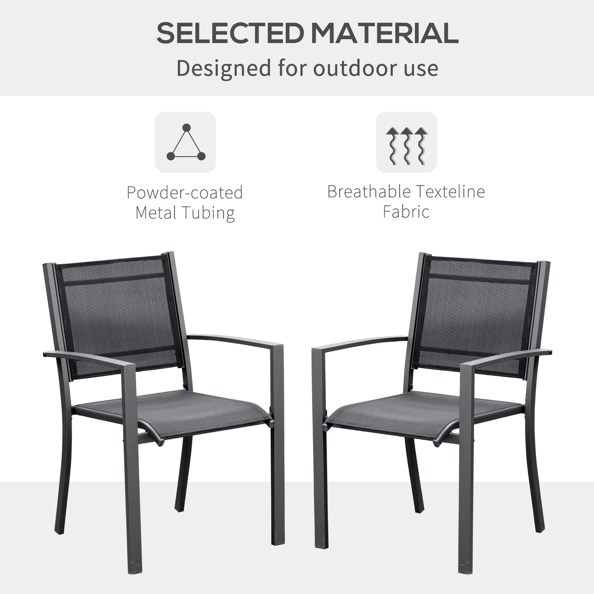 Outsunny Garden Chairs Set Of 2 Outdoor Chairs with Steel Frame Texteline Seats for Camping Fishing Patio Balcony Dark Grey Black