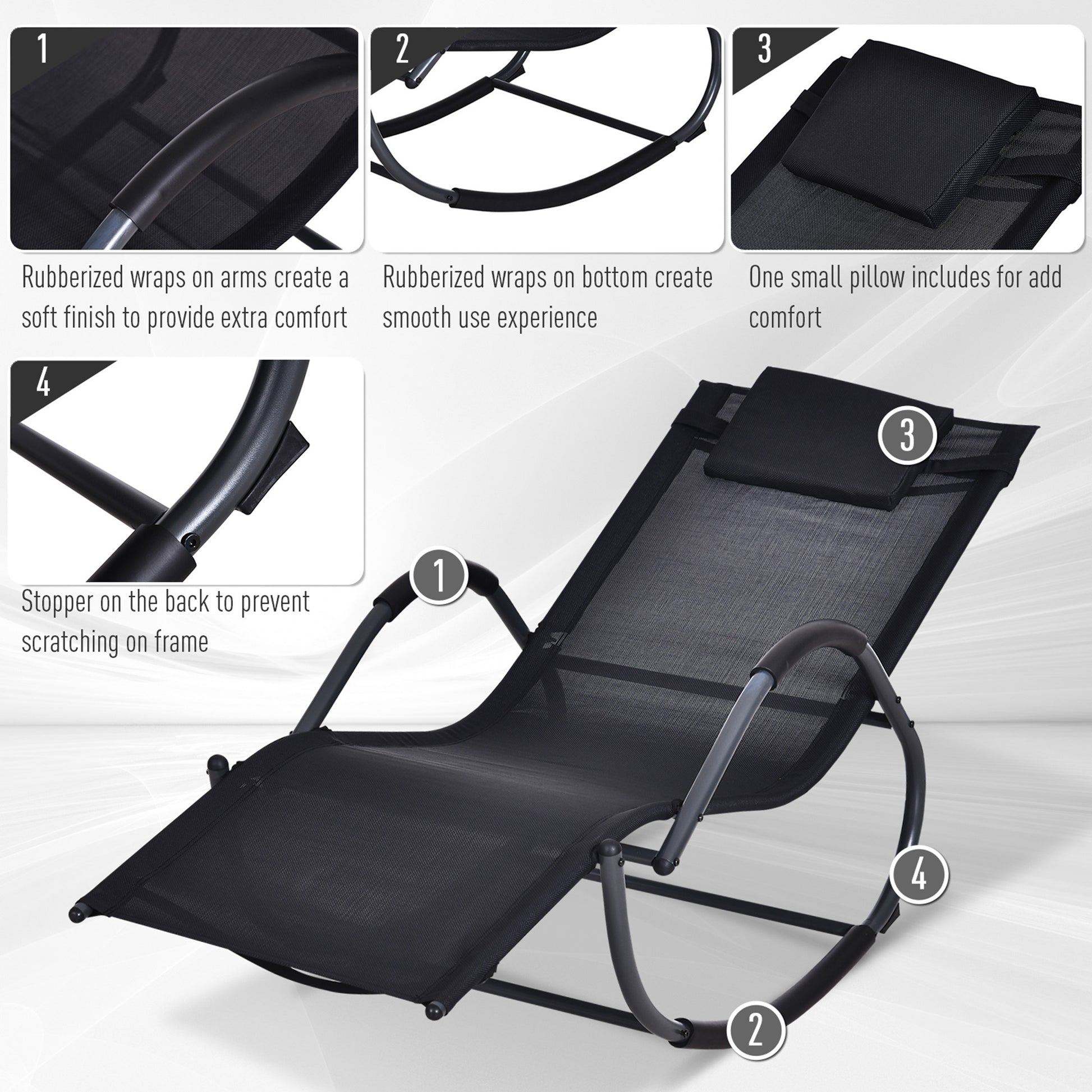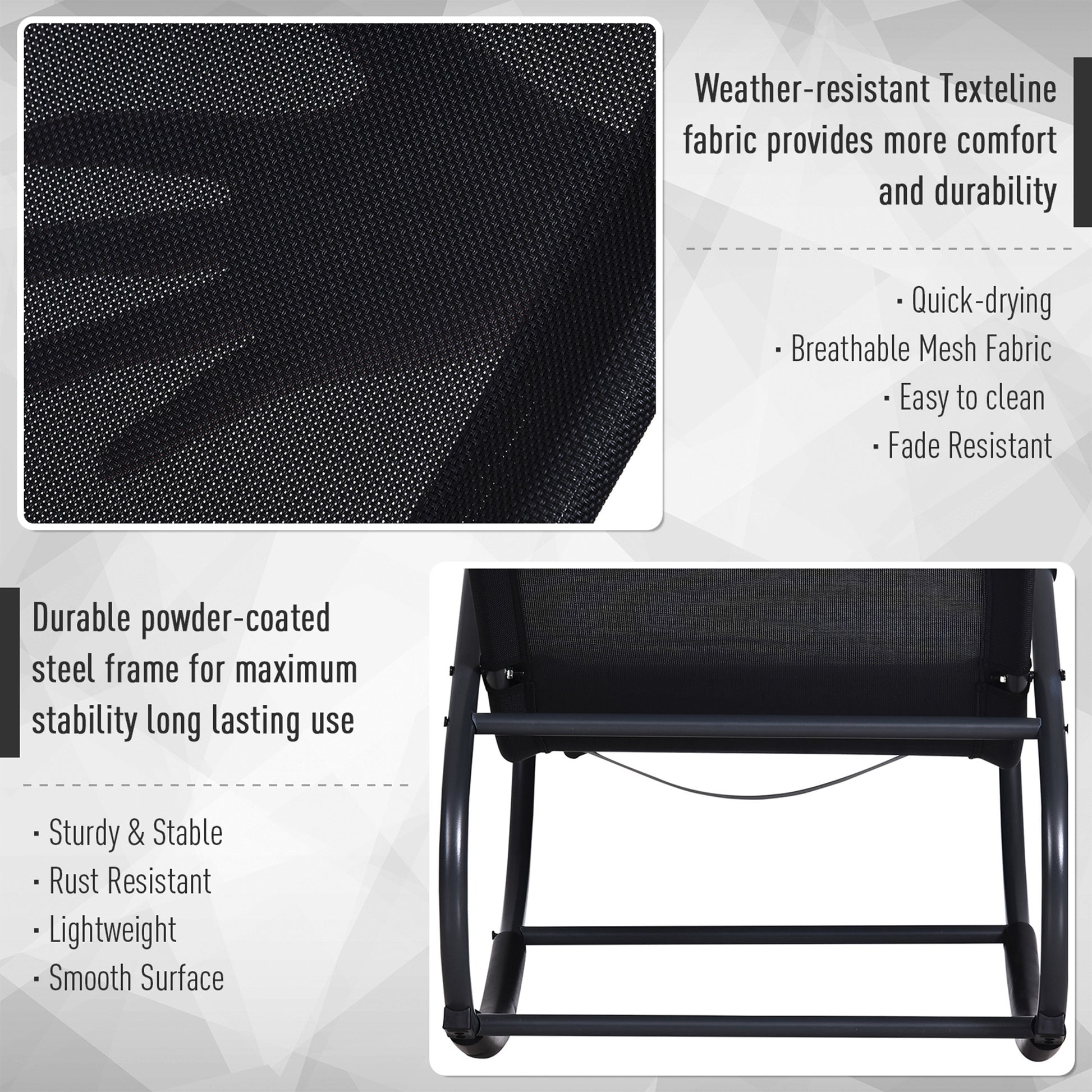 Outsunny Garden Rocking Chair Patio Texteline Rocking Lounge Chair Zero Gravity Rocker Outdoor Patio Garden Recliner Seat with Padded Pillow - Black
