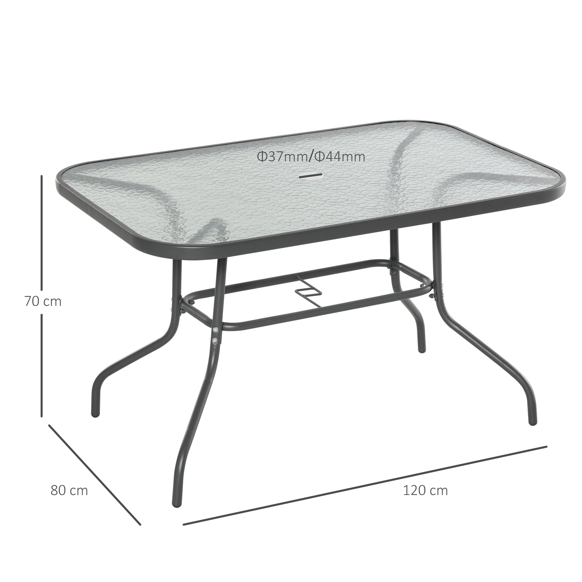 Enhance your outdoor dining experience with our sleek glass garden table. Create lasting memories with loved ones under the shade of a parasol.