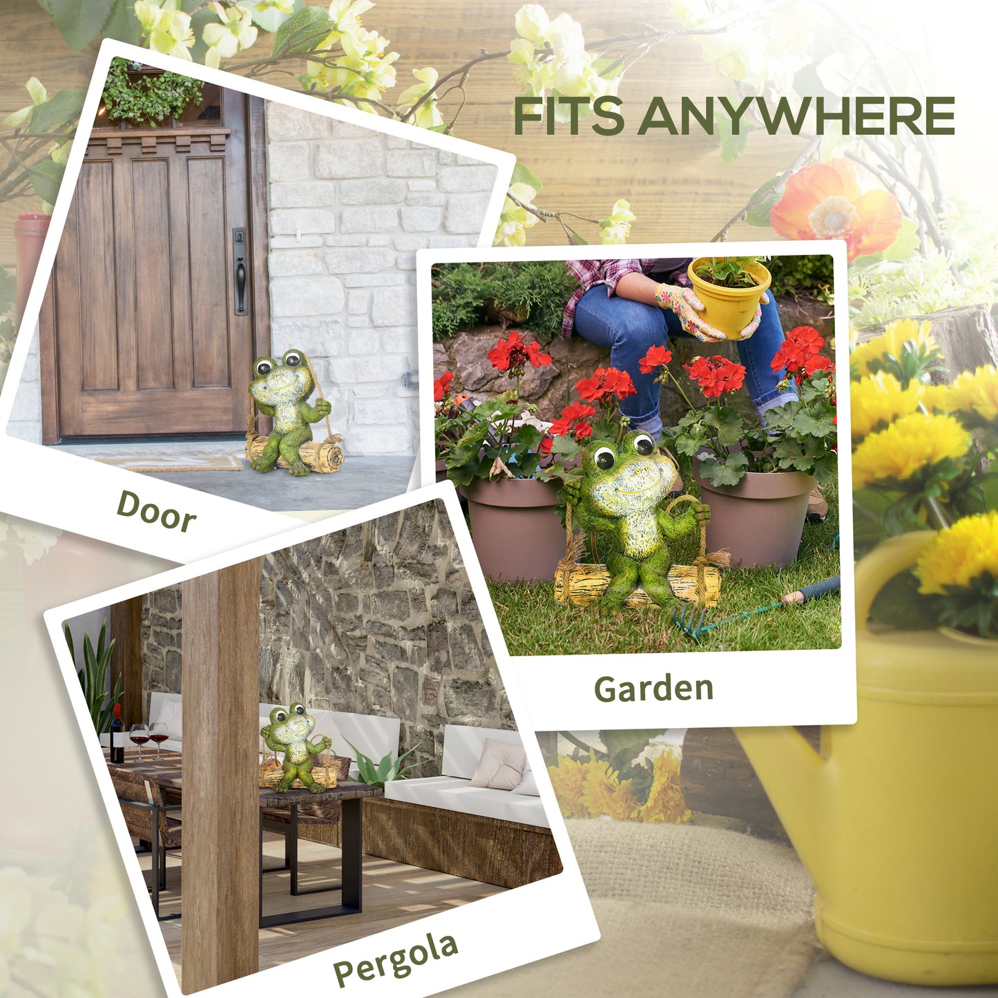 Outsunny Hanging Garden Statue, Vivid Frog on Swing Art Sculpture, Outdoor Ornament Home Decoration, Green