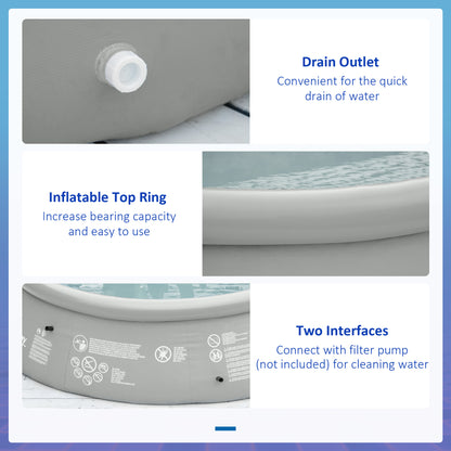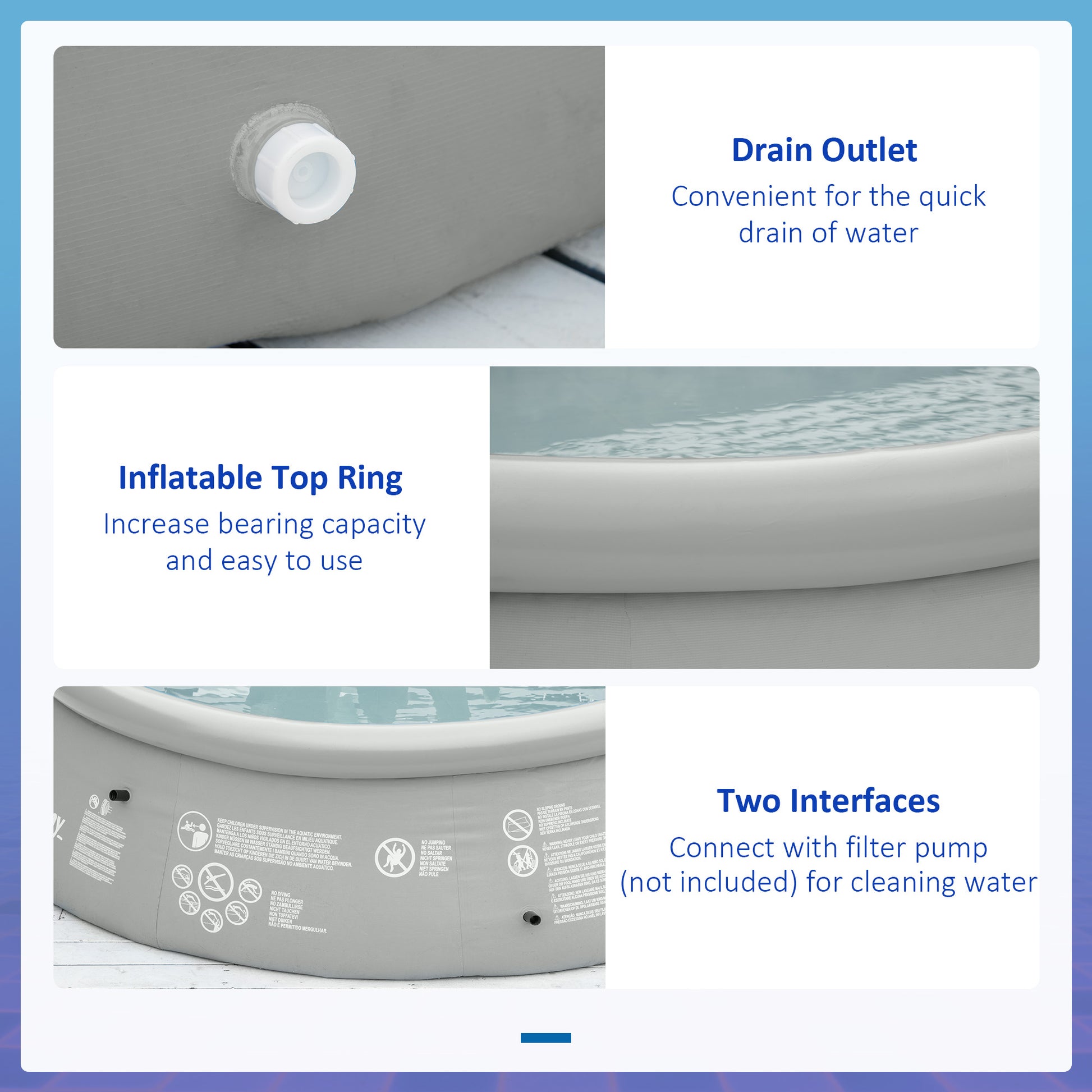 Outsunny Inflatable Swimming Pool, Family-Sized Round Paddling Pool with Hand Pump for Kids, Adults, Outdoor, Garden and Backyard, 274cm x 76cm, Grey
