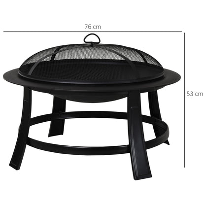 Outsunny Metal Large Firepit Bowl Outdoor Round Fire Pit with Lid, Log Grate, Poker for Backyard, Camping, BBQ, Bonfire, 76 x 76 x 53cm, Black