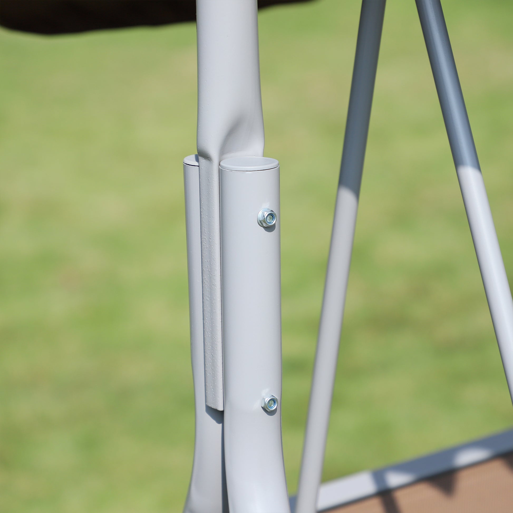 Outsunny Metal Swing Chair Garden Hammock Bench 3 Seater Rock Shelter Brown