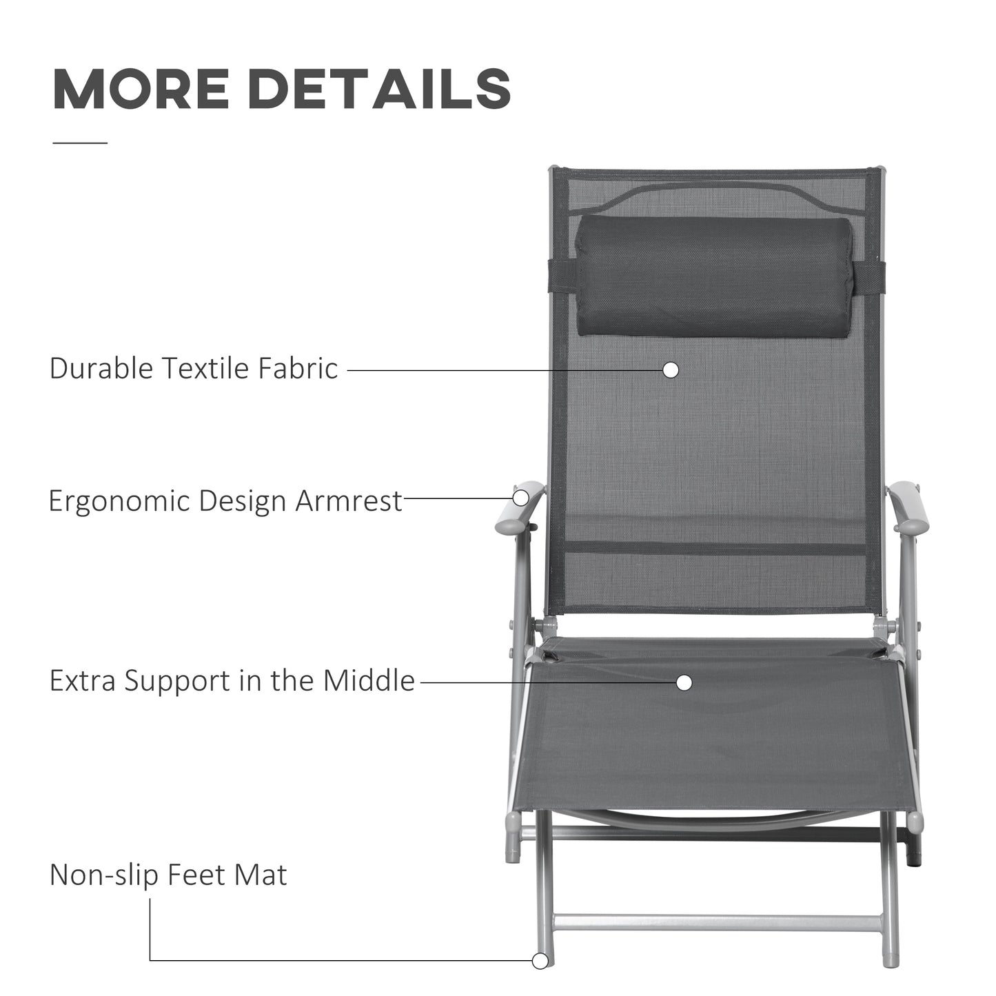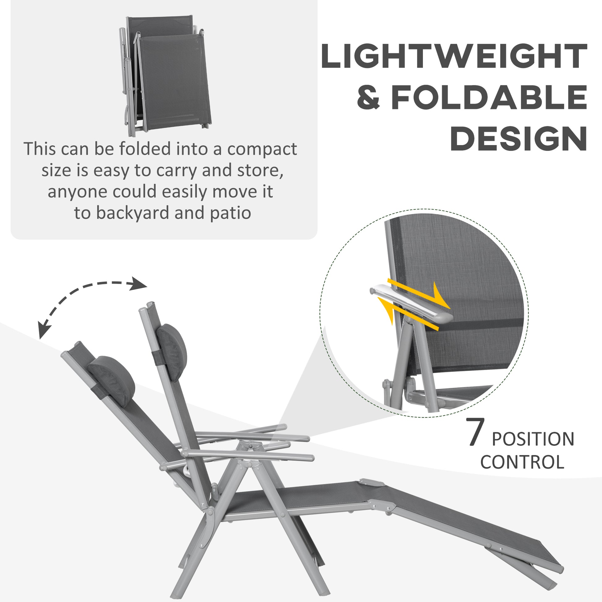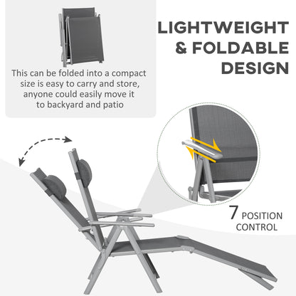 Outsunny Outdoor Folding Chaise Lounge Chair Recliner with Portable Design & 7 Adjustable Backrest Positions Steel Fabric Sun Lounger- Dark Grey