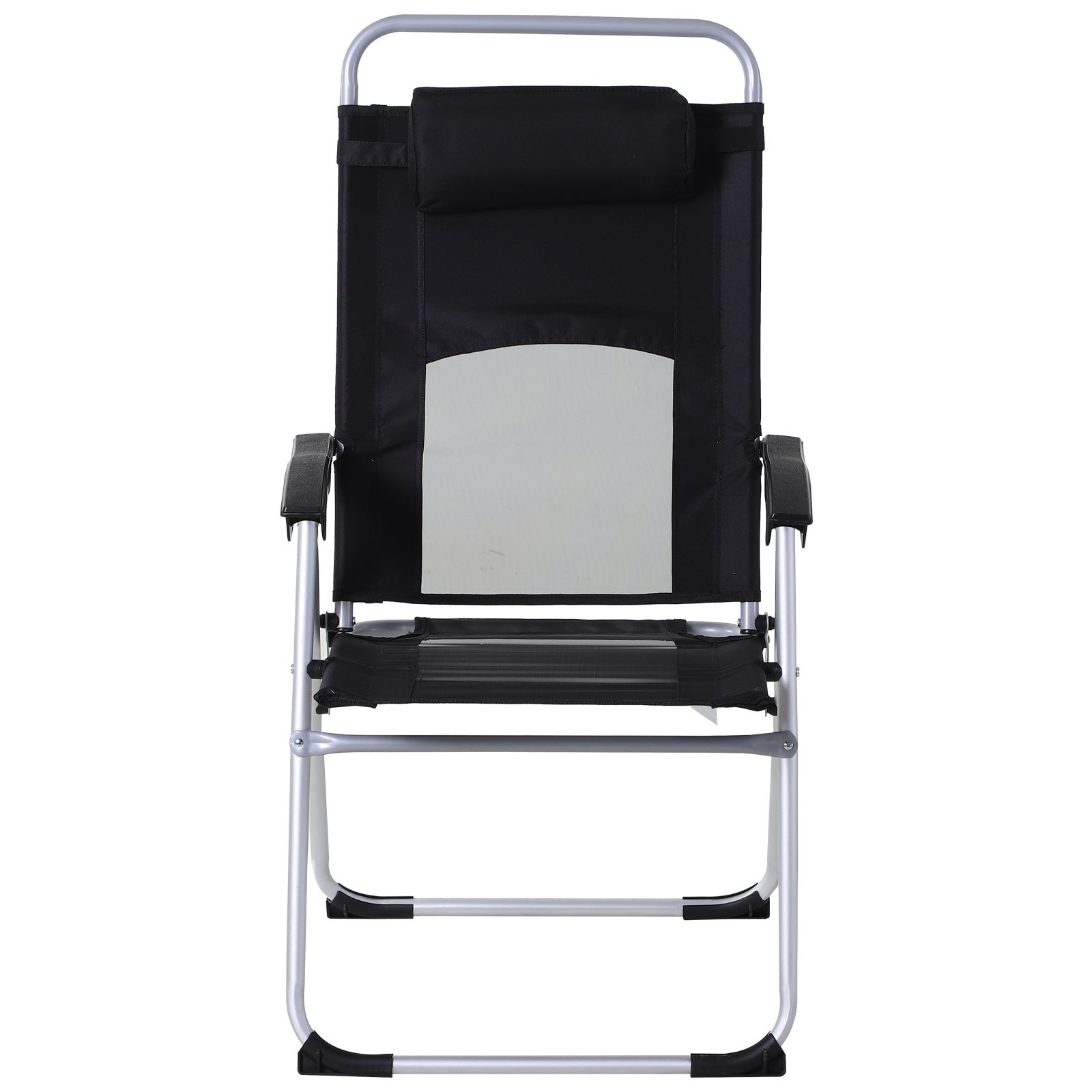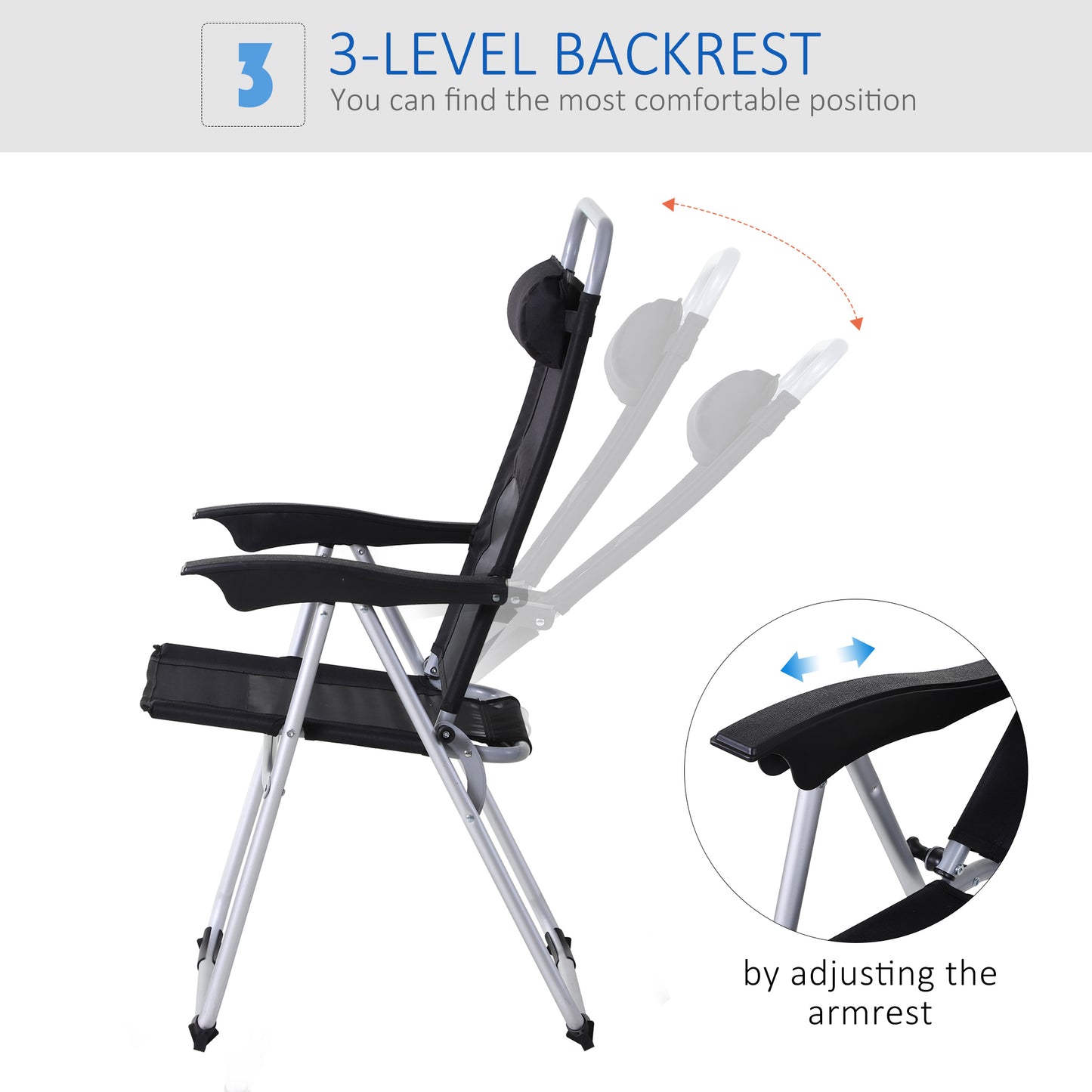 Outsunny Outdoor Garden Folding Chair Patio Armchair 3-Position Adjustable Recliner Reclining Seat with Pillow - Black