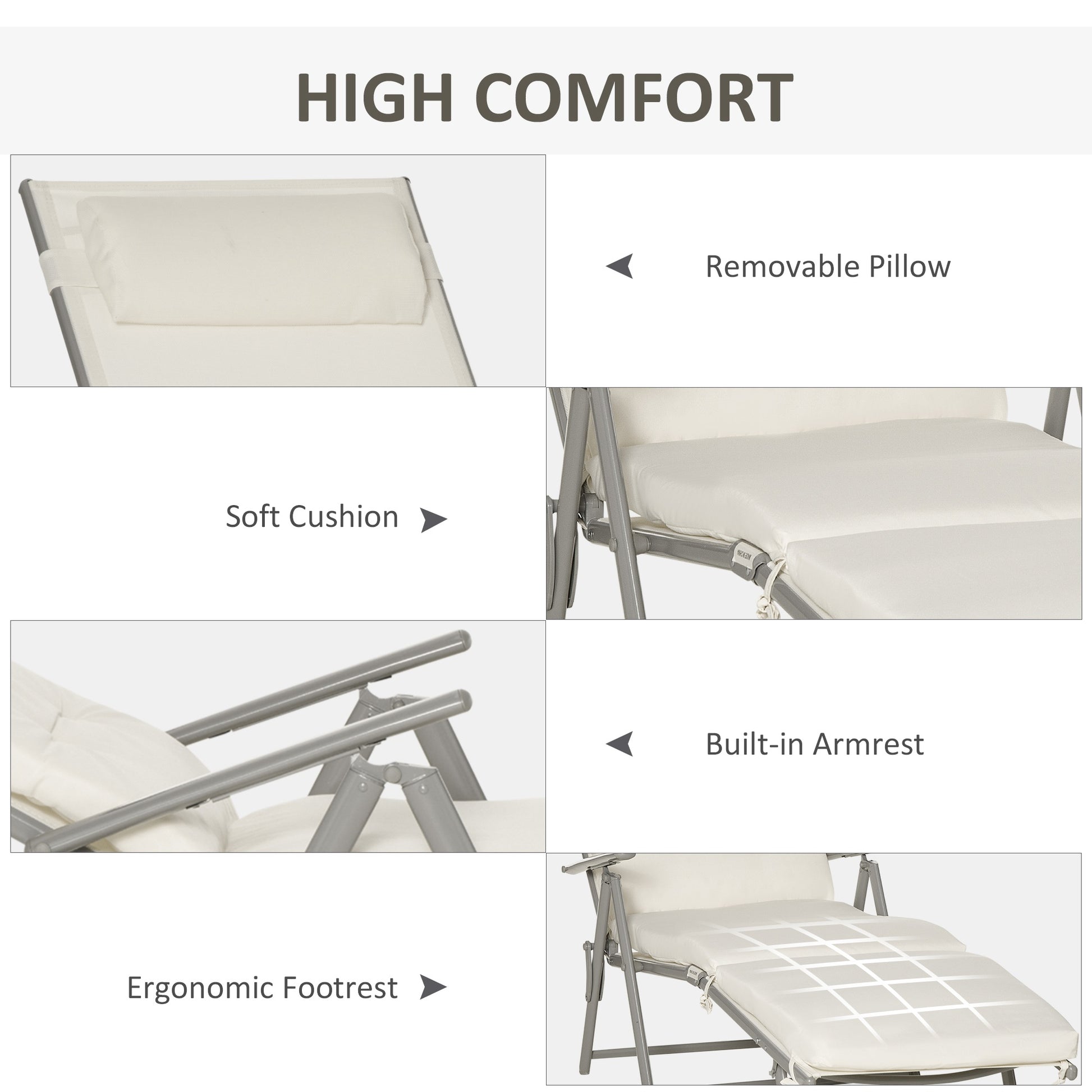 Outsunny Outdoor Patio Sun Lounger Garden Texteline Foldable Reclining Chair Pillow Adjustable Recliner with Cushion - Cream White