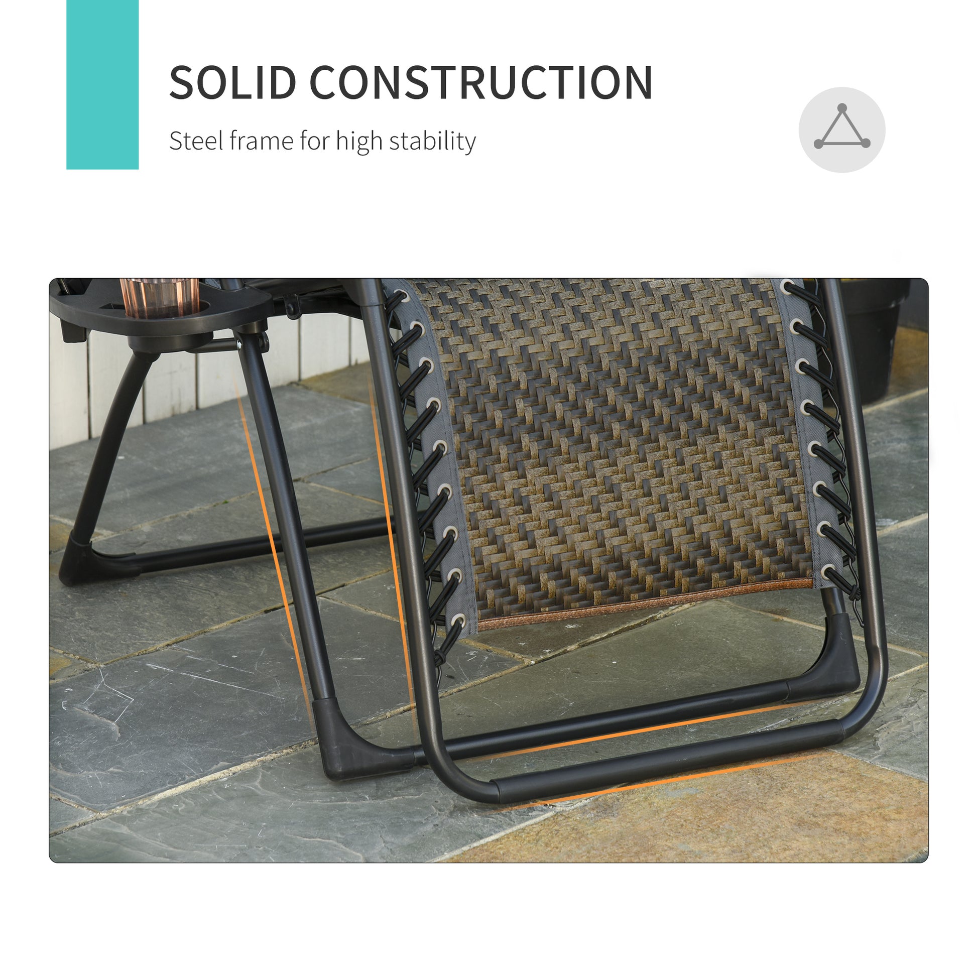Outsunny Outdoor Zero Gravity Folding Sun Lounge Chair with Headrest, Recliner Chair with Cup and Phone Holder for Garden, Balcony, Deck, Grey