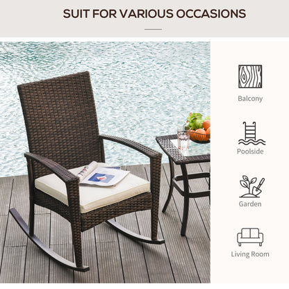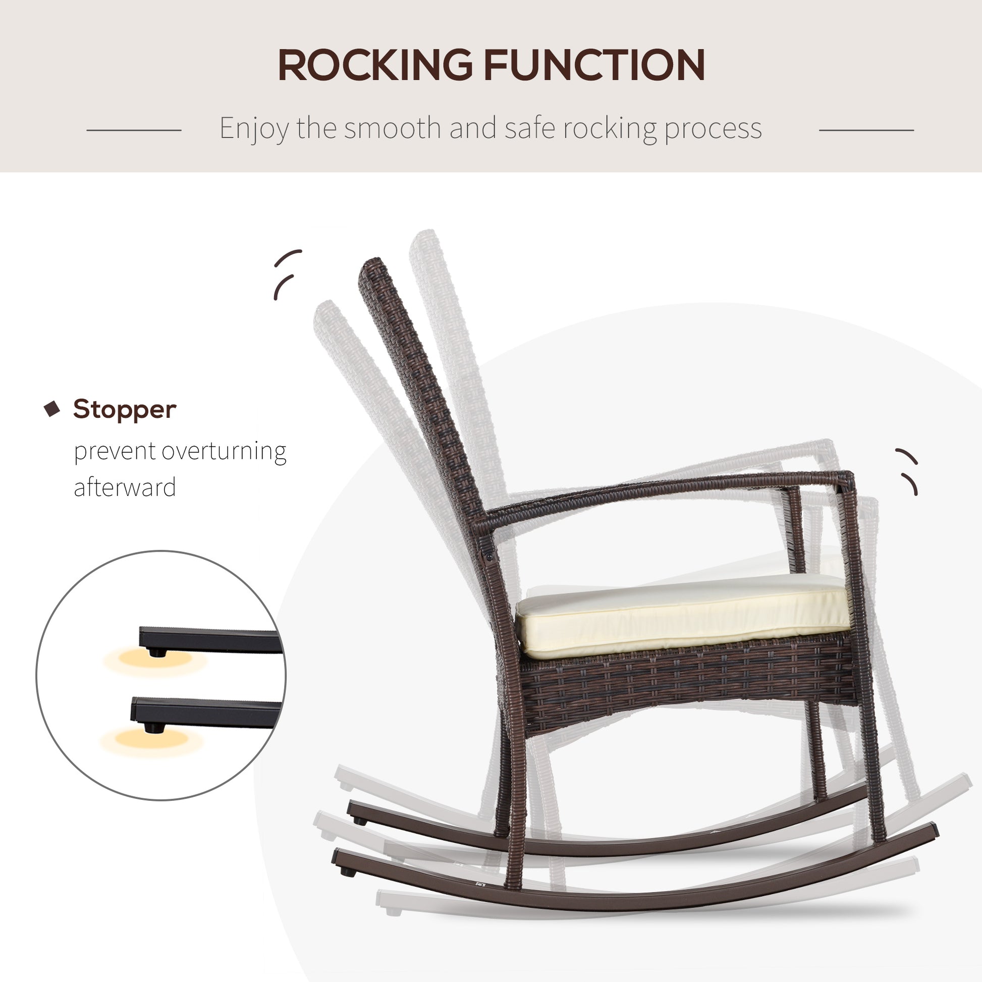 Outsunny Rattan Rocking Chair Rocker Garden Furniture Seater Patio Bistro Relaxer Outdoor Wicker Weave with Cushion - Brown