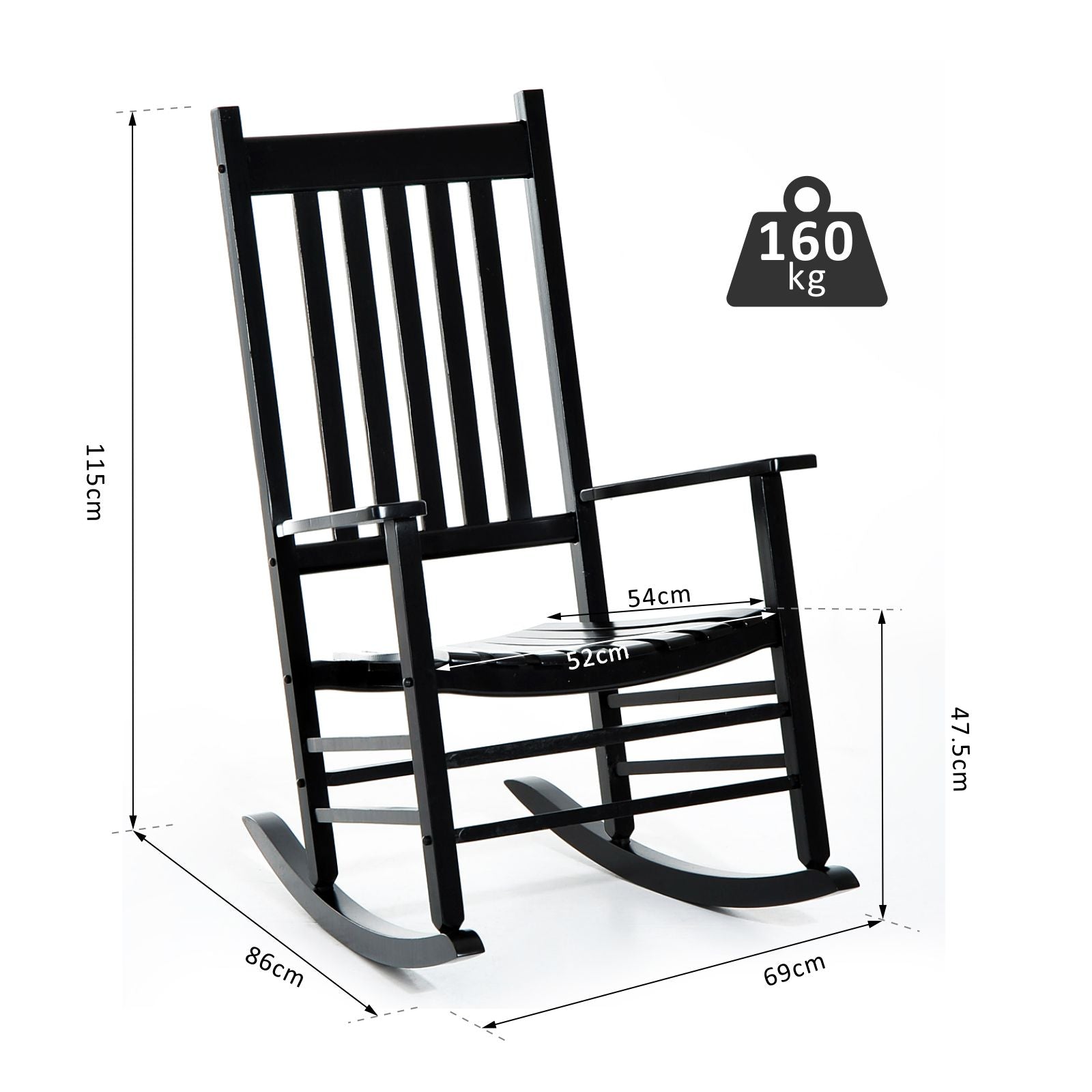 Outsunny Rocking Chair Armchair Wooden Patio Rocker Balcony Deck Outdoor Porch Garden Seat Black