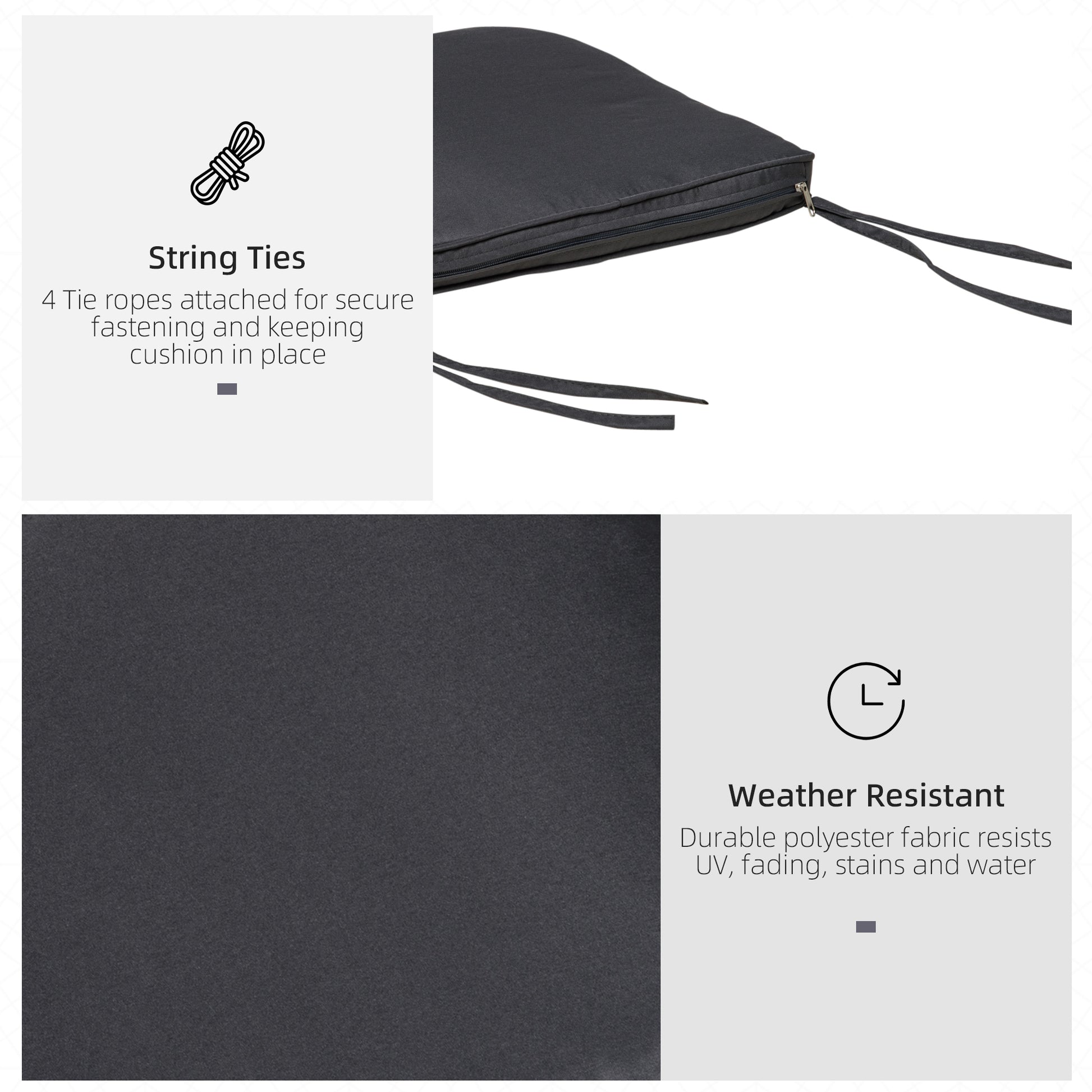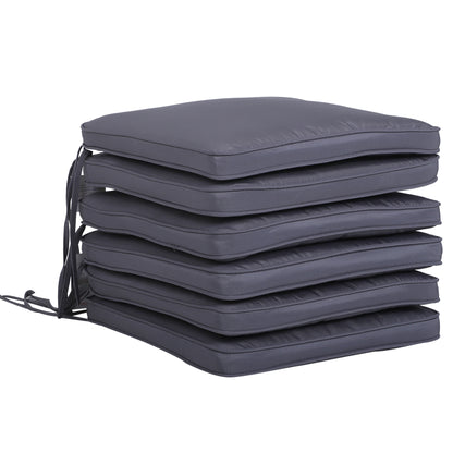 Outsunny Set of 6 Chair Cushion Seat Pads Dining Chair with Straps Indoor Outdoor Removable Tie On Garden Patio Grey