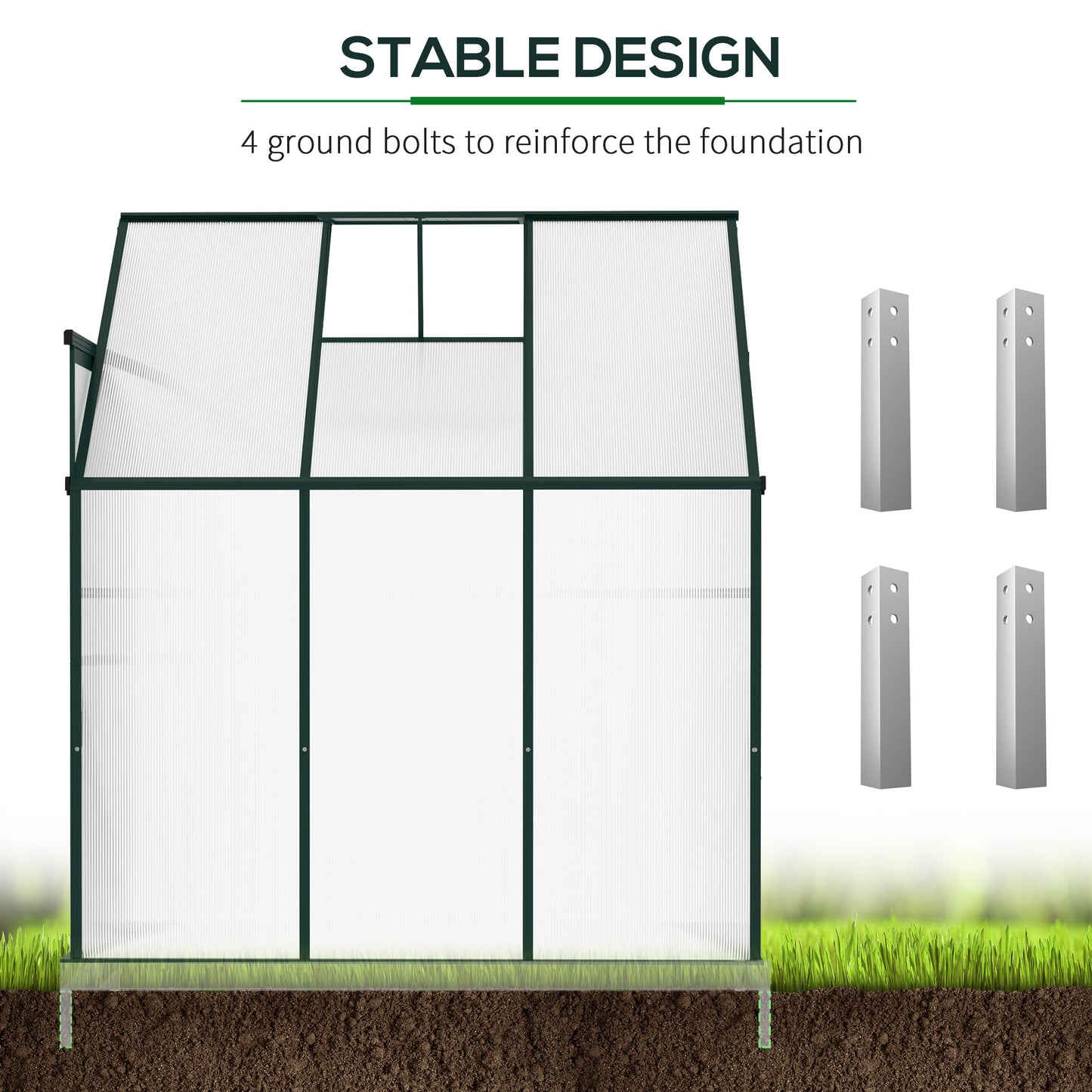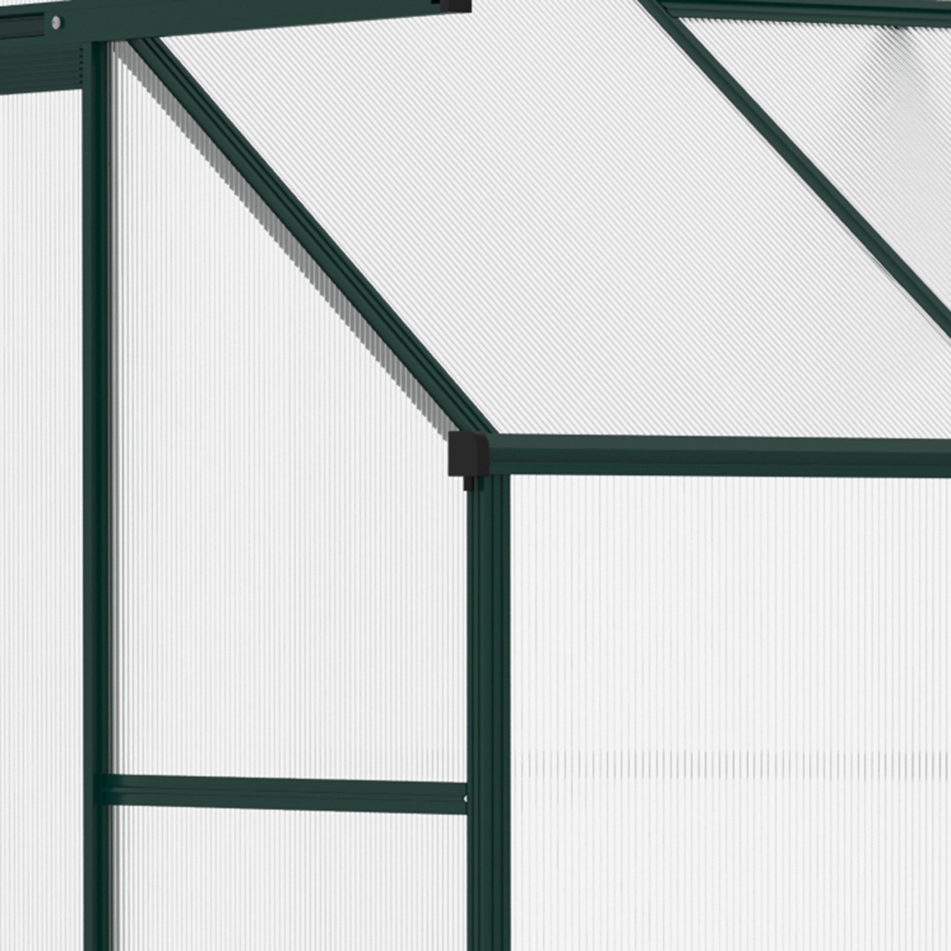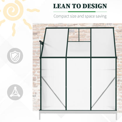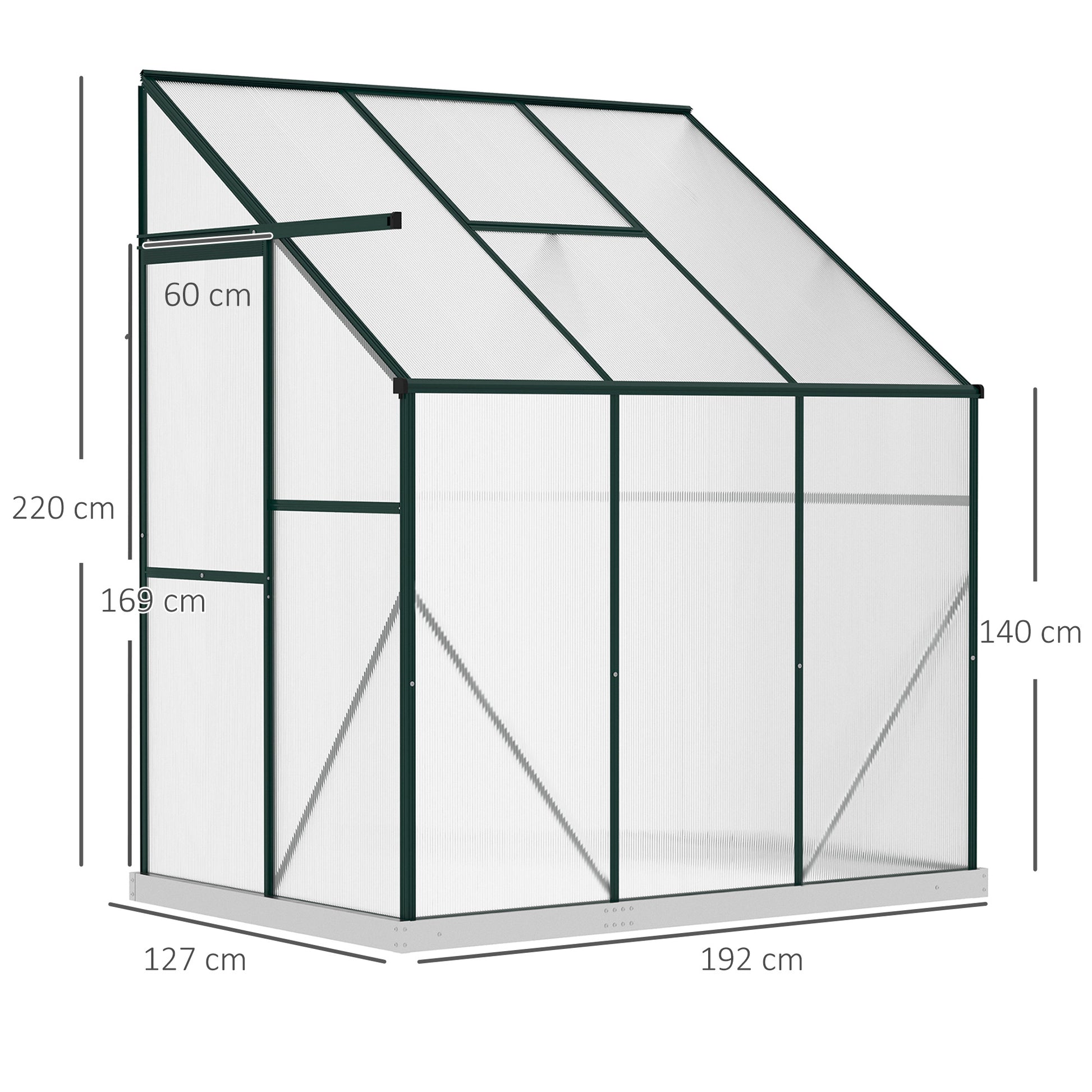 Outsunny Walk-In Lean to Greenhouse Garden Heavy Duty Aluminium Polycarbonate with Roof Vent for Plants Herbs Vegetables, Green, 192 x 127 x 220 cm