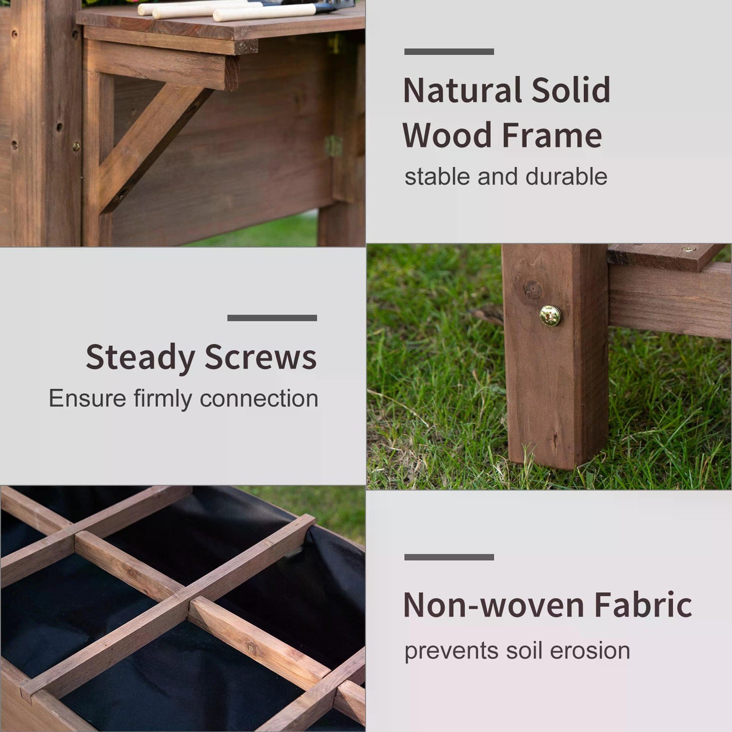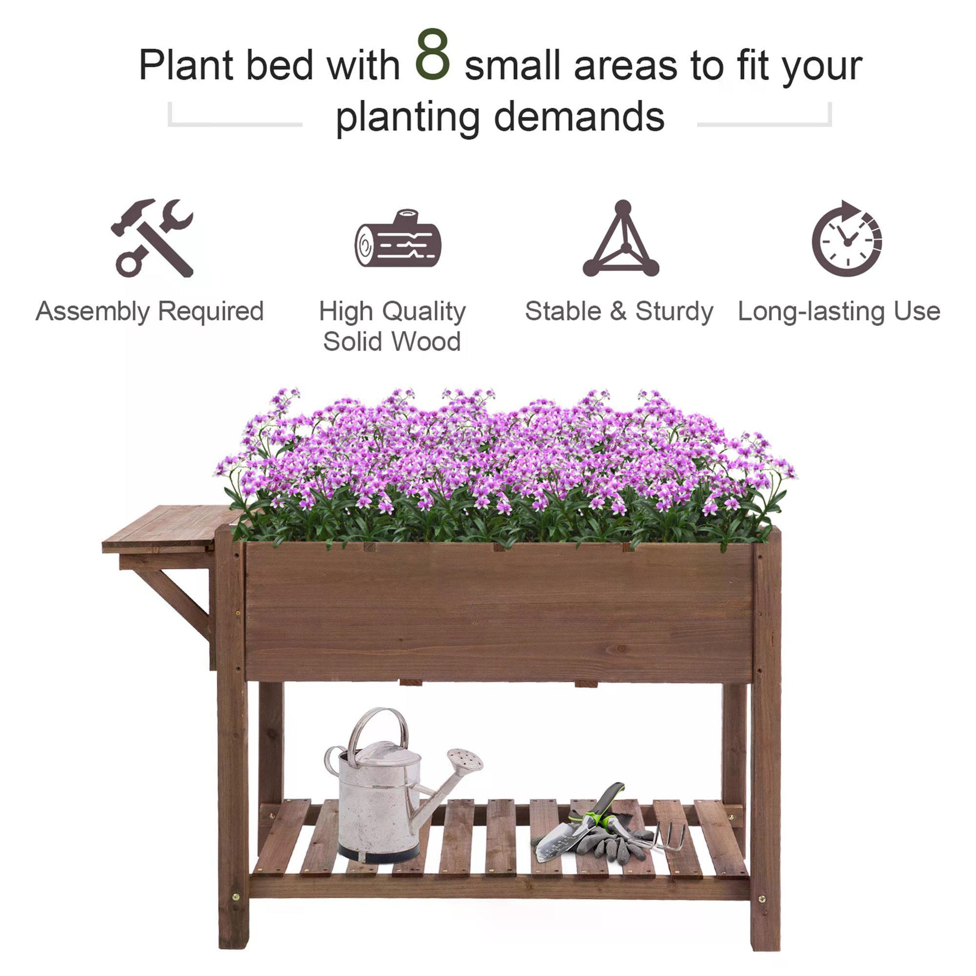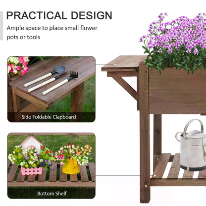 Outsunny Wooden Plant Stand Wooden Planter Raised Garden Plant Stand Outdoor Tall Flower Bed Box with Bottom Shelf, Brown, 123 x 54 x 74cm