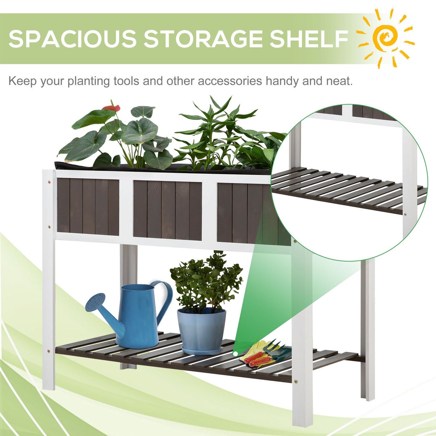 Outsunny Wooden Planter Raised Elevated Garden Bed Planter Flower Boxes with Shelf Solid Wood Outdoor/Indoor, 119x57x89cm