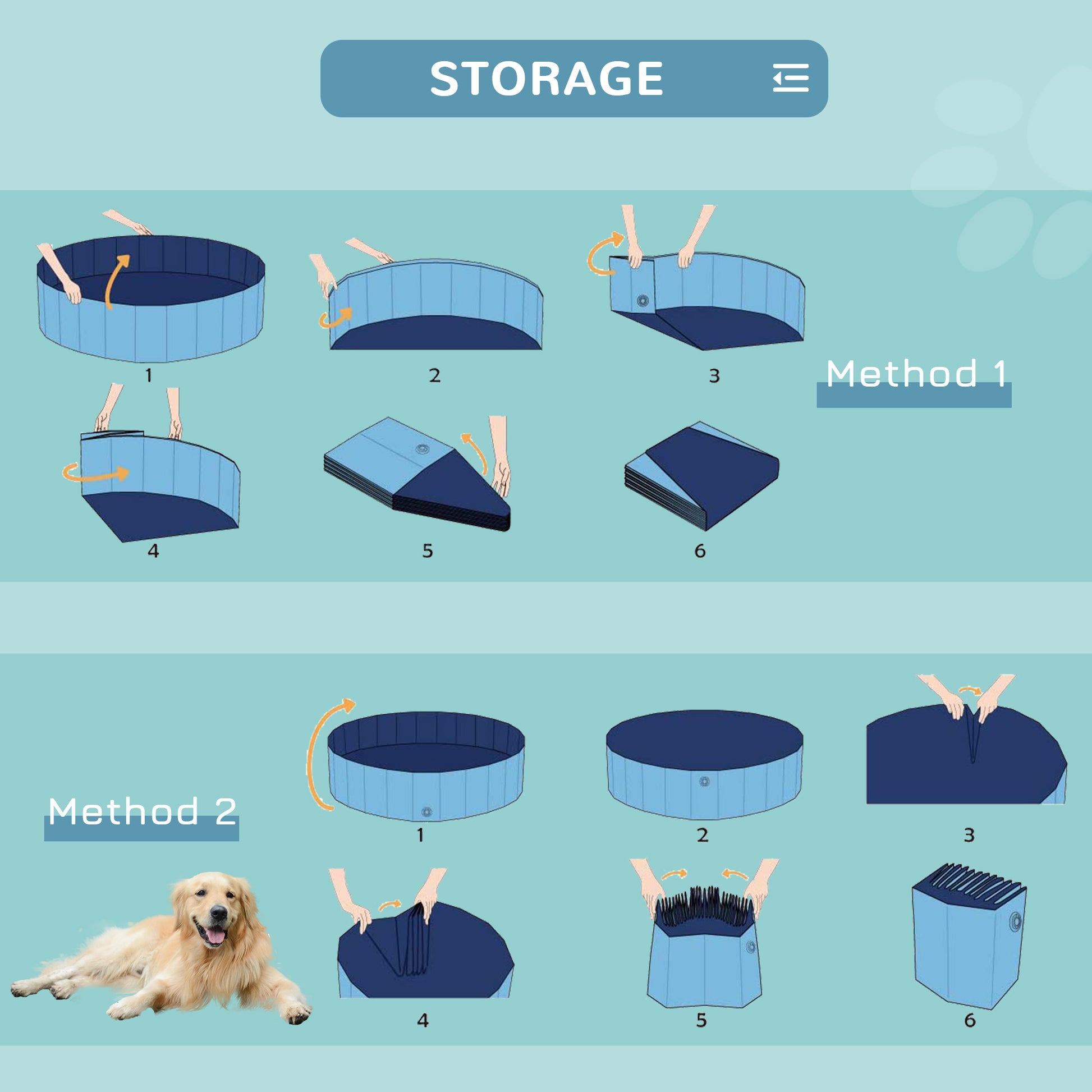 PawHut Dog Swimming Pool Foldable Pet Bathing Shower Tub Padding Pool Dog Cat Puppy Washer Indoor/Outdoor 120 - 30H cm M Sized