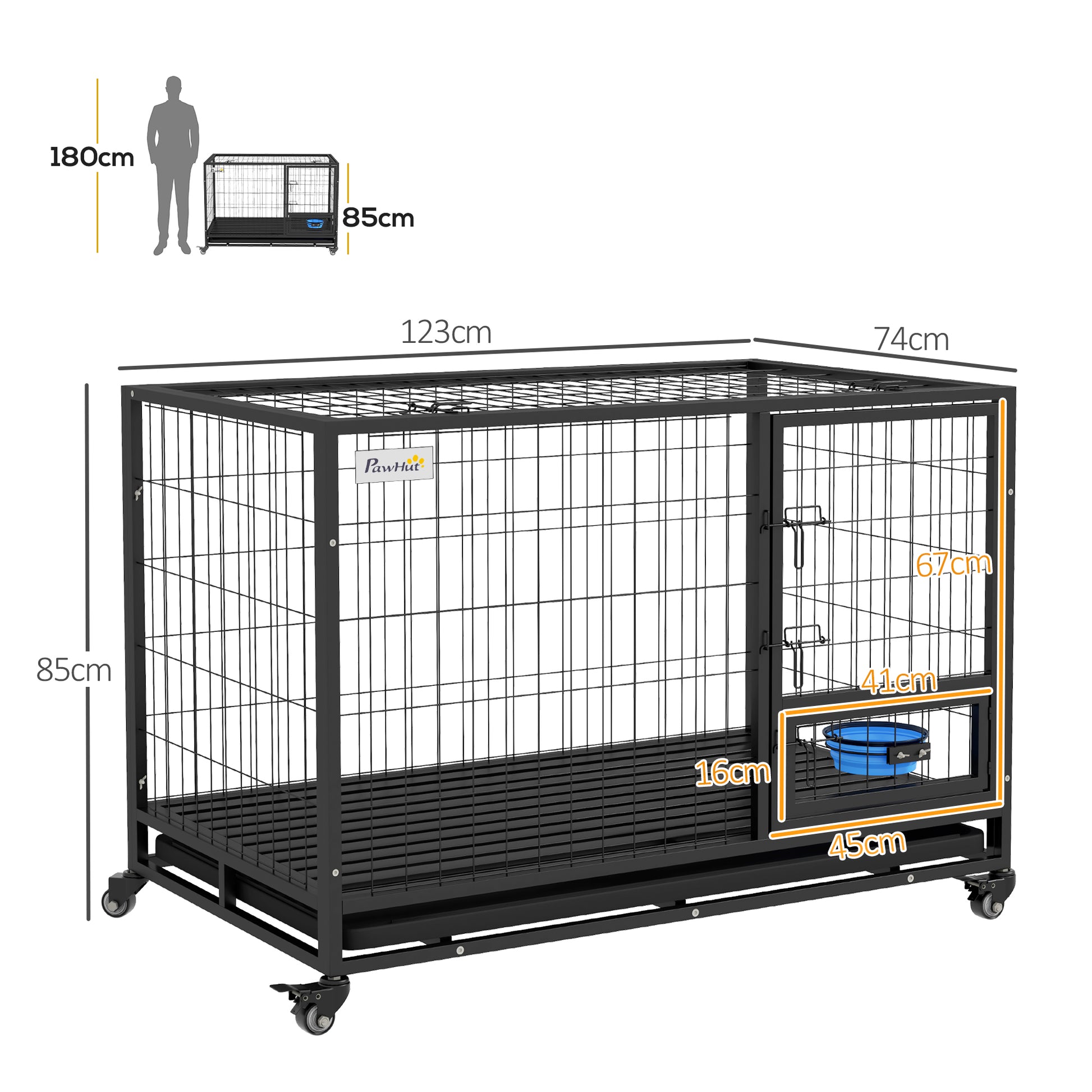 PawHut Heavy Duty Dog Crate on Wheels w/ Bowl Holder, Removable Tray, Openable Top, Detachable Door, for L, XL Dogs