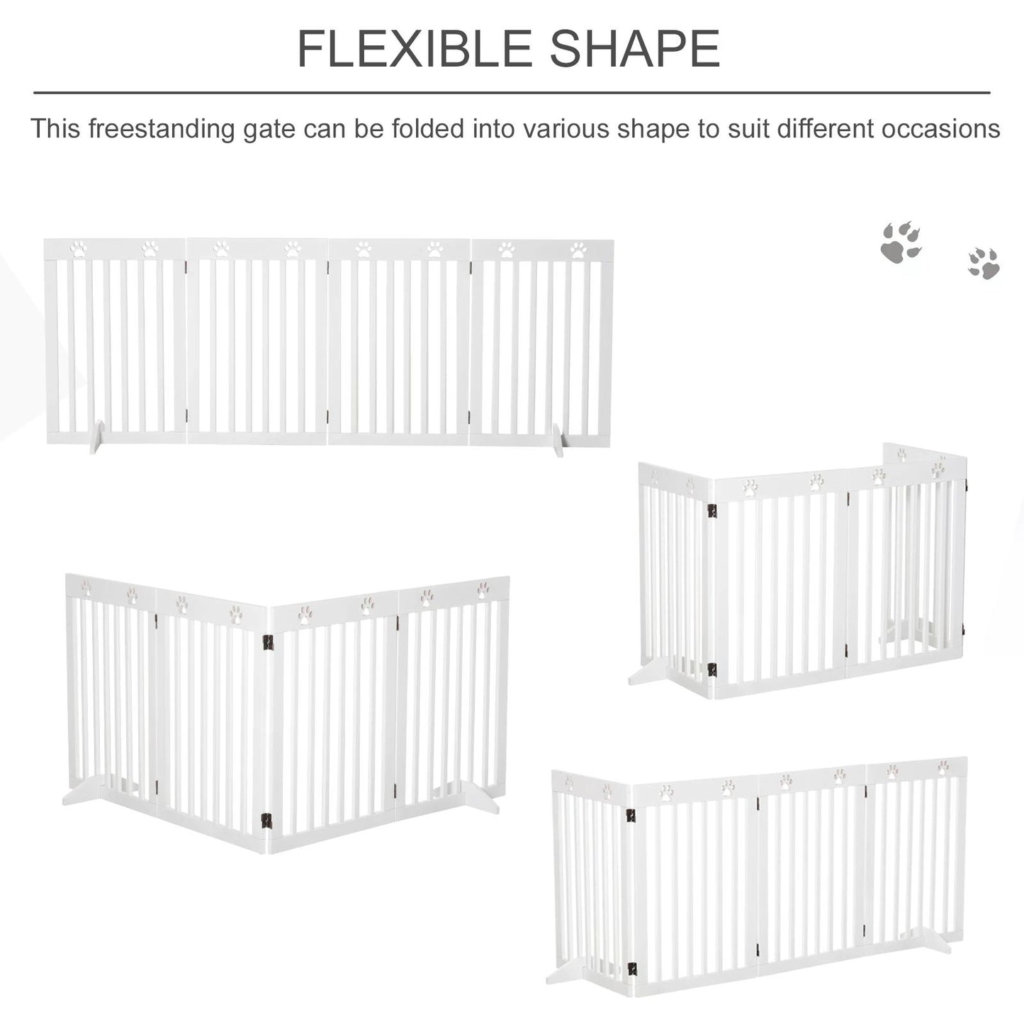 Keep your furry friend safe with our durable wooden pet gate. Easy to shape and fold, it's the perfect barrier for your dog's safety. Try it risk-free for 30 days!