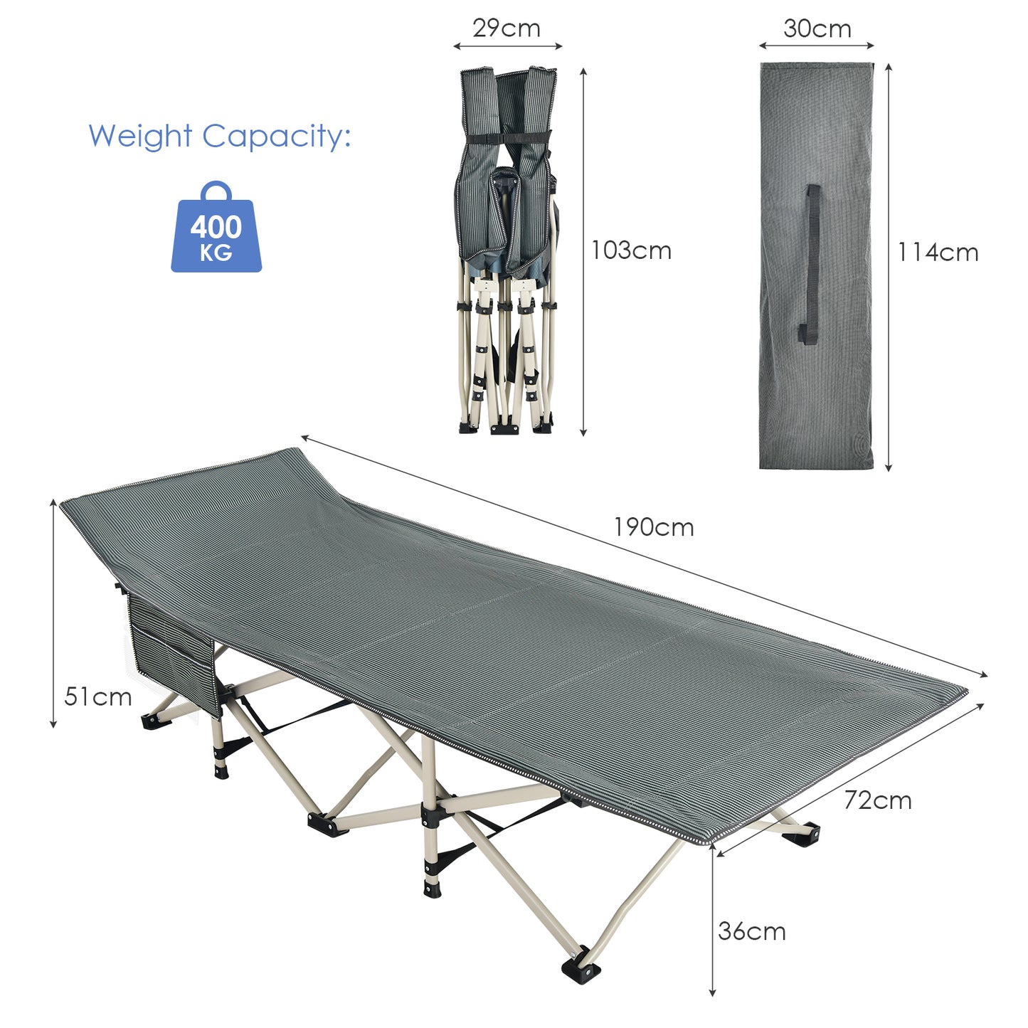Easy Folding & Carrying: The lightweight and portable sleeping bed can be folded and unfolded in seconds with no tools required, and designed with a carrying bag for convenient storage and transportation. Besides, there exists a spacious side storage pocket to store your water bottles, phones, keys, sunglasses, books, and more.