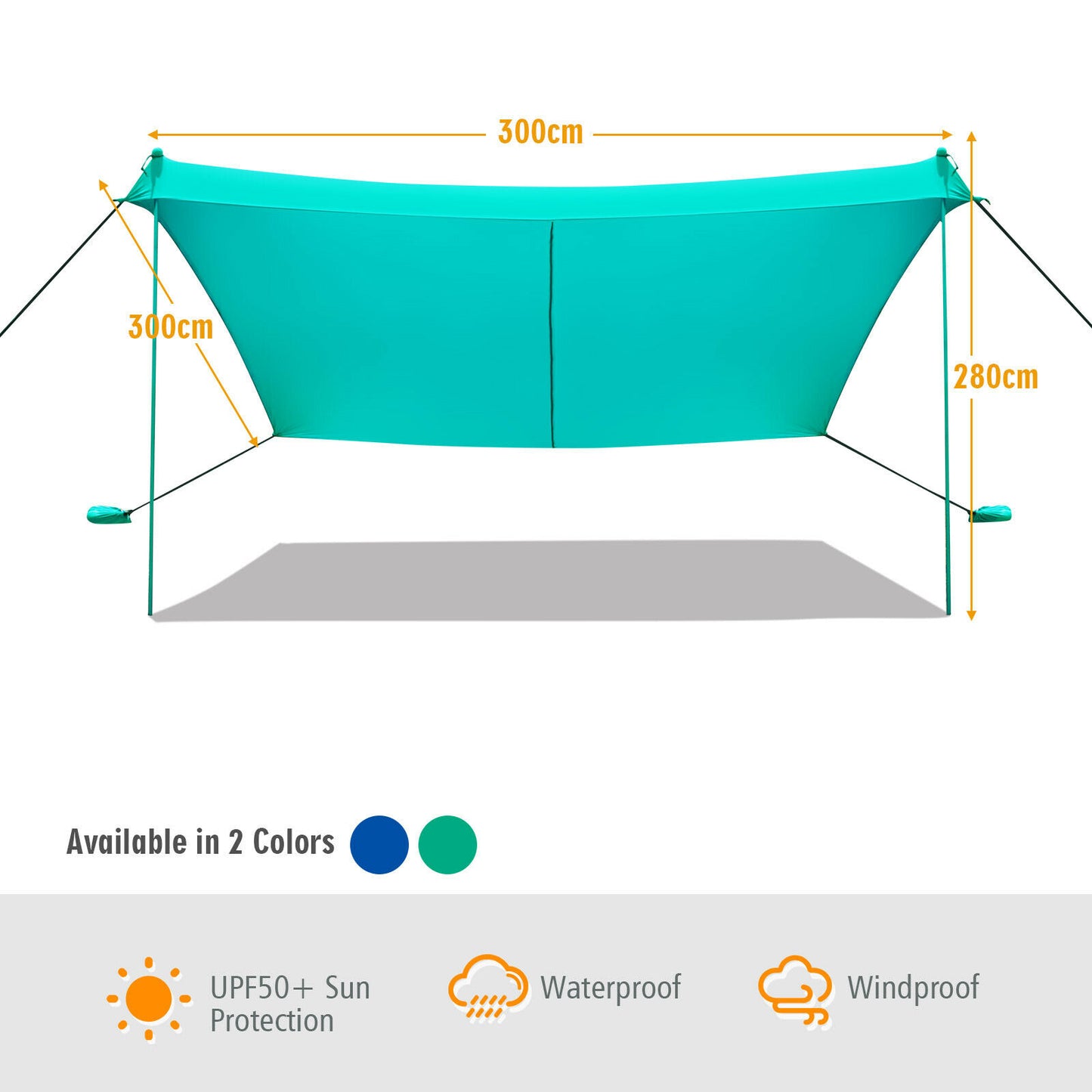 Portable Sunshade Canopy Waterproof Tent UPF 50 300cm x 300cm-Green