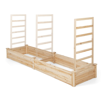 This raised garden bed measures 235 x 63 x 102 cm (L x W x H), and it features a spacious planting box with 2 compartments, therefore you can grow different plants in one convenient location. Additionally, it comes with a beautiful and practical trellis, allowing climbing plants to flourish and adding a touch of elegance to your garden. Besides, it adopts an open-ended base, which ensures proper drainage and ventilation, promoting healthy growth. Crafted from durable fir wood, this garden bed is resistant to warping or cracking, ensuring long-term use. Other than that, the plain wood surface can be easily spray-painted or stained, allowing you to add various patterns and colors that suit your personal taste. Create bountiful harvests, grow stunning flowers, and express your creativity with this versatile and sturdy garden bed.